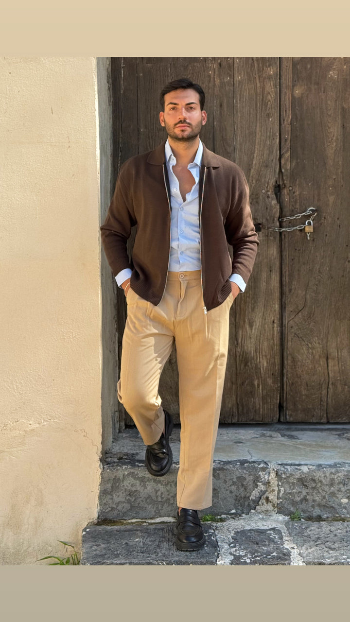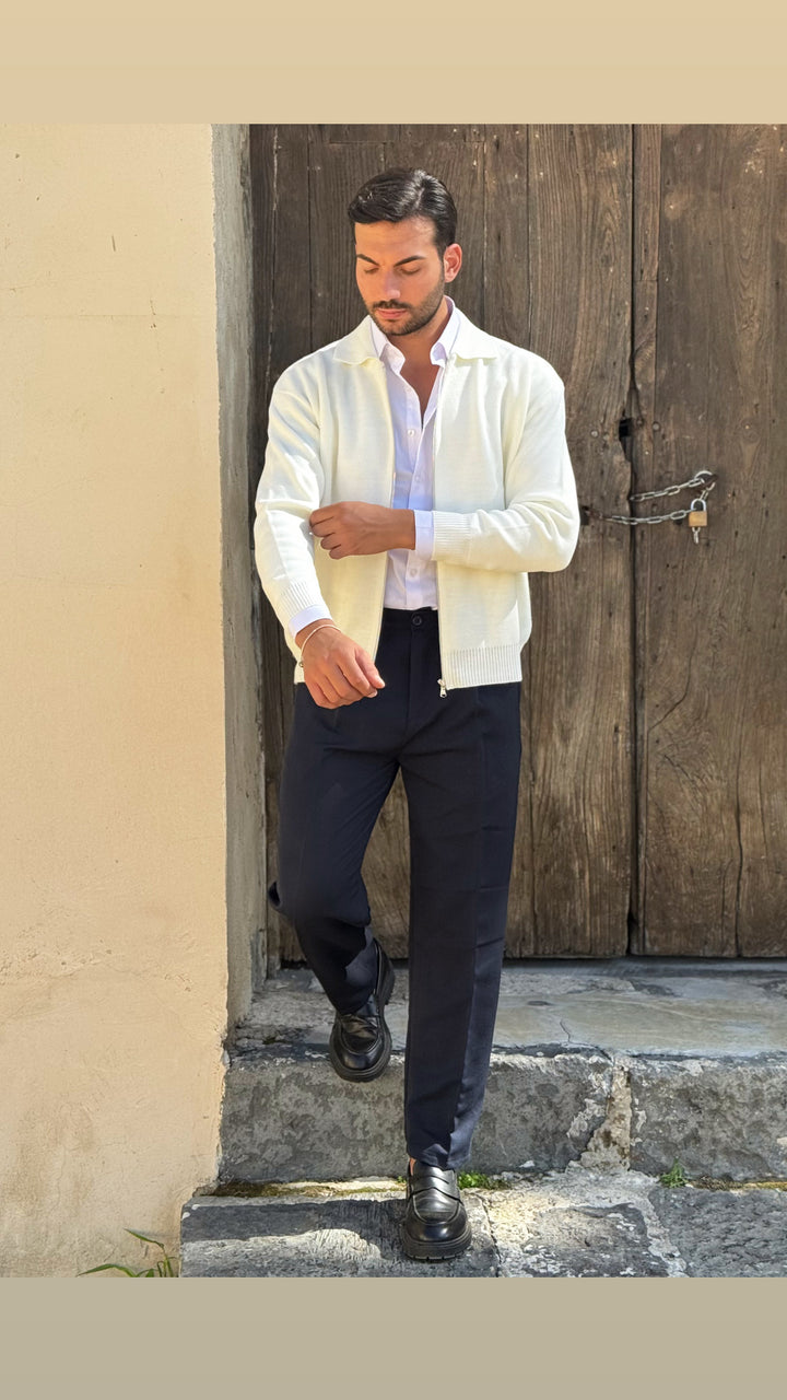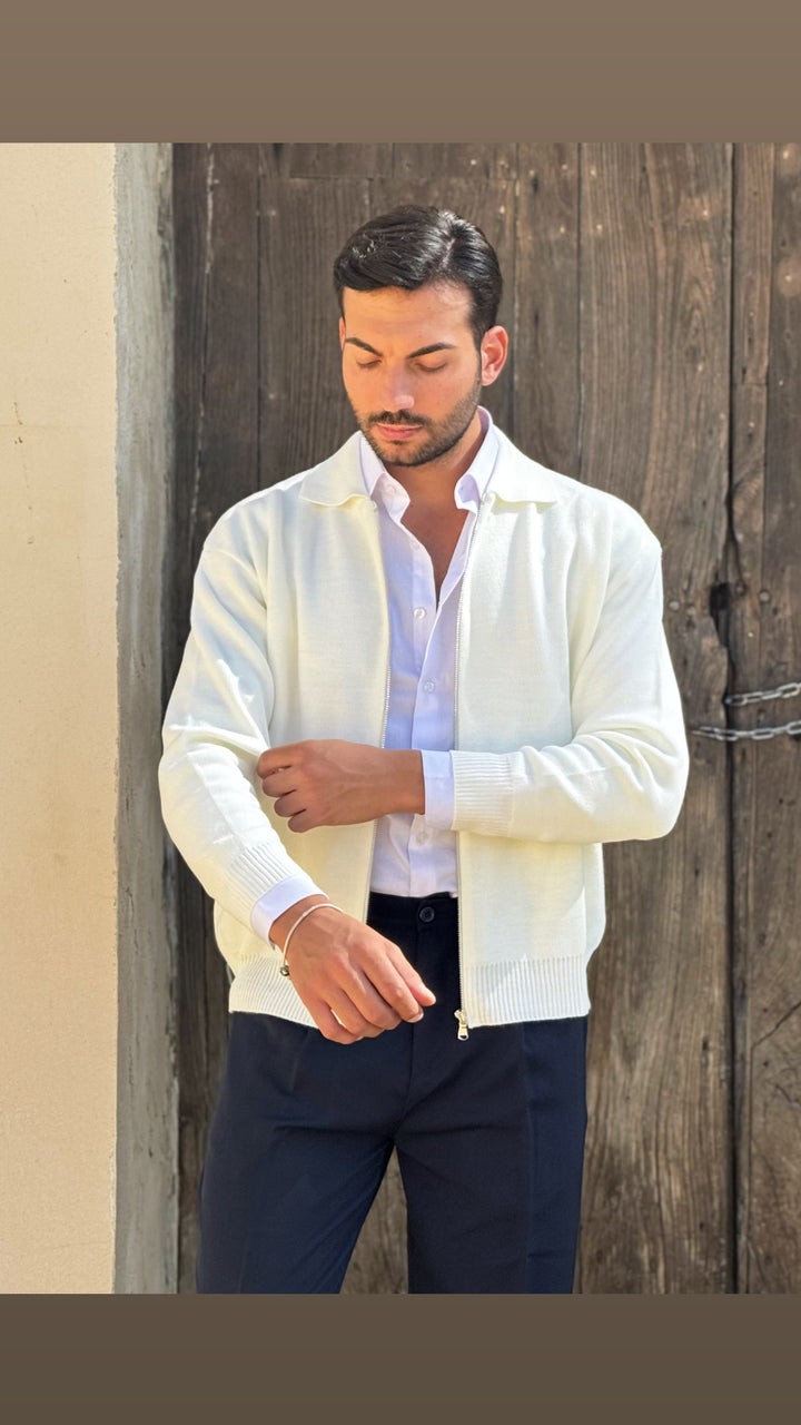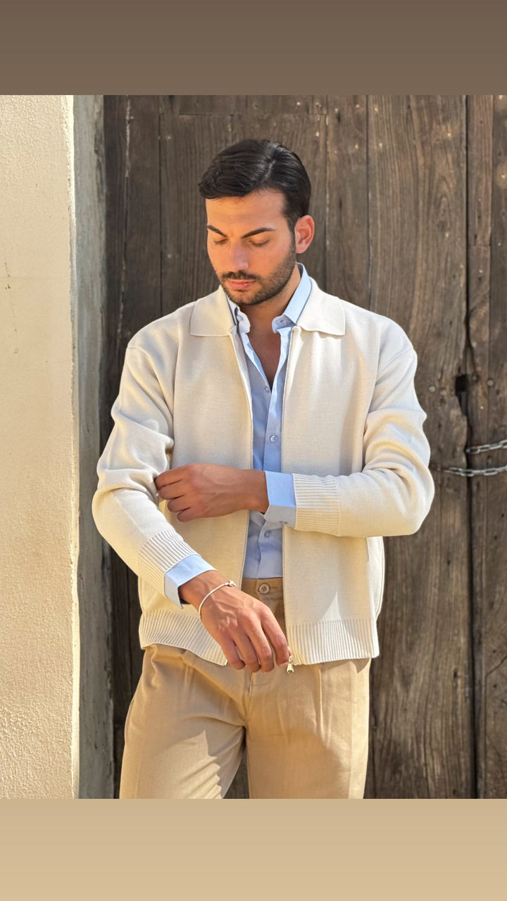 Cardigan con collo a camicia e chiusura con zip in metallo, ottimo per completare i vostri outfit per questo inverno. Vestibilità slim, il modello 1,76 per 73kg indossa M