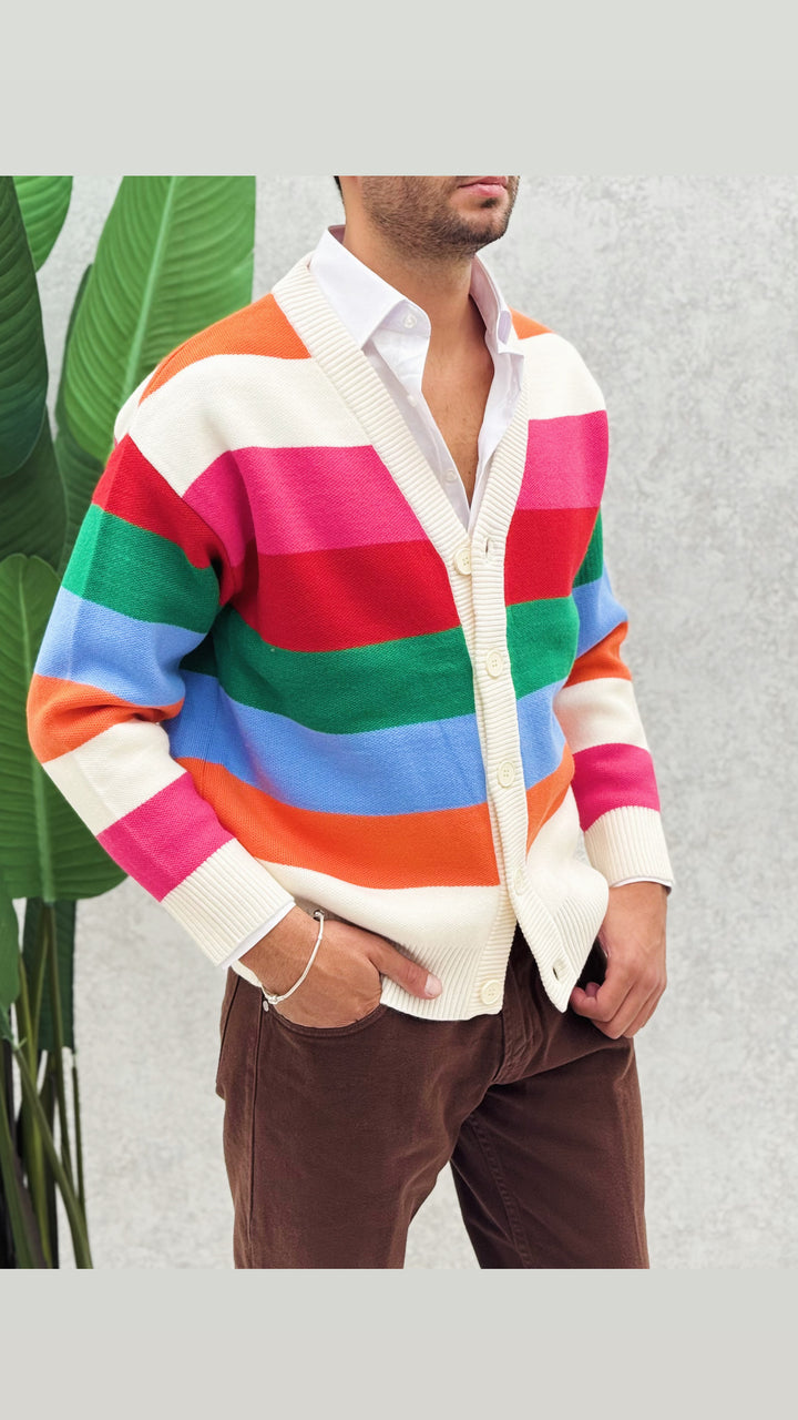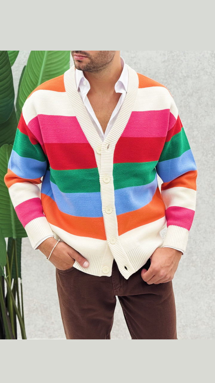 Cardigan monopetto a fasce colorate, adatto per rendere i vostri outfit più vivaci e colorati. Vestibilità regolare, il modello 1,76 per 73kg indossa S