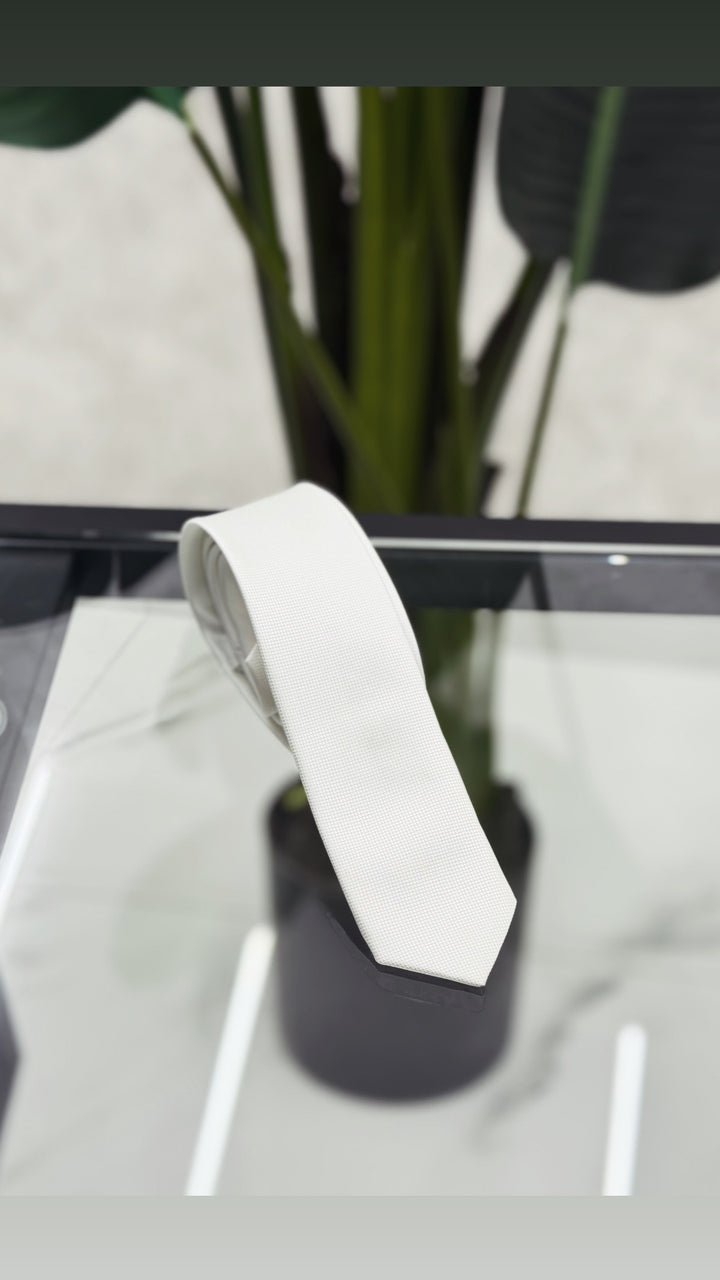 Cravatta in tessuto raso, viscosa o cotone, adatta per finalizzare il vostro look. N.B può presentarsi con dettaglio a nido d’ape o diagonale.