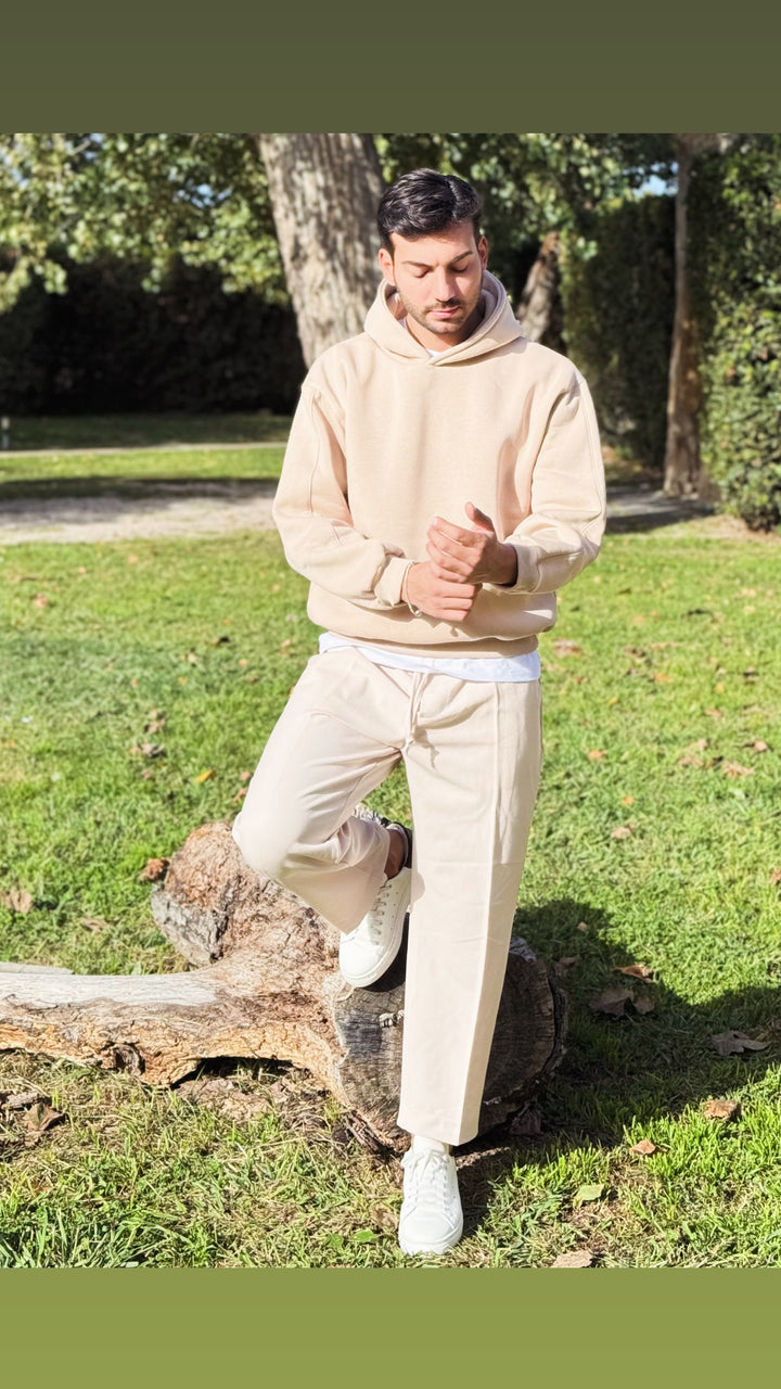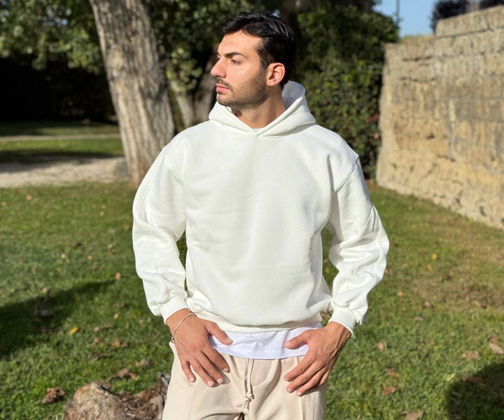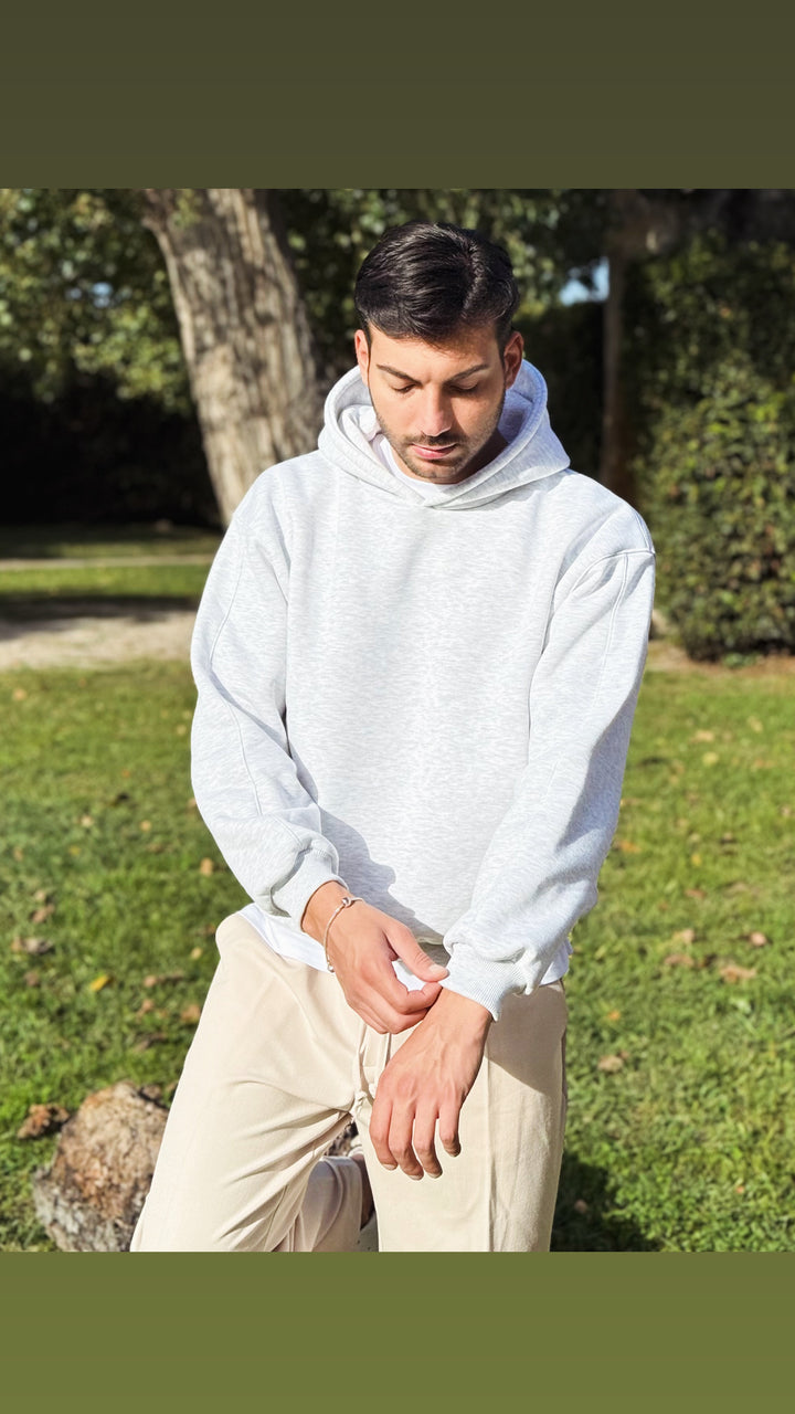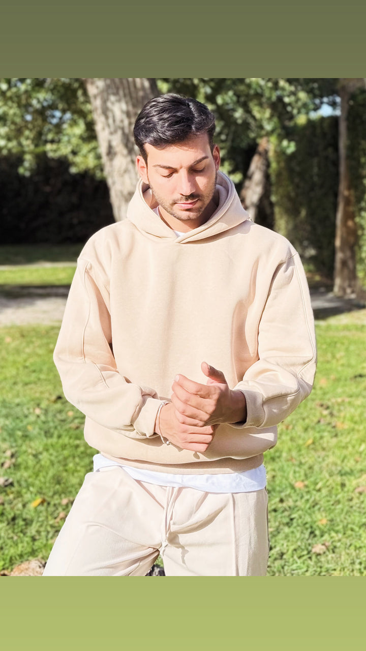 Felpa basic con cappuccio con dettaglio su di esso, disponibile in diverse colorazioni. Vestibilità slim, il modello 1.76 per 73kg indossa M