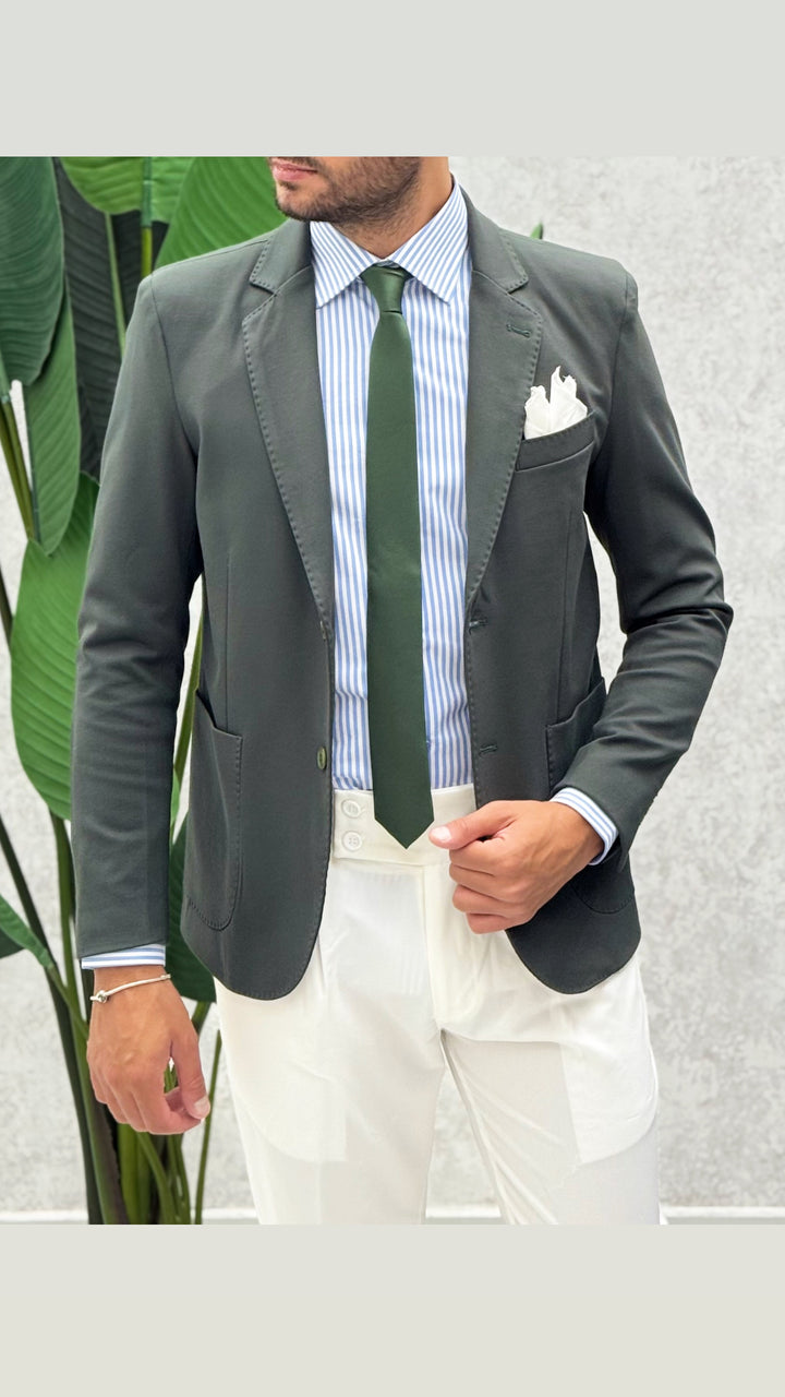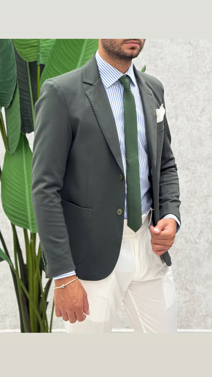 Giacca monopetto in punto Milano, tasca a toppa, modello adatto per ogni outfit. Vestibilità slim, il modello 1,76 per 73kg indossa 46