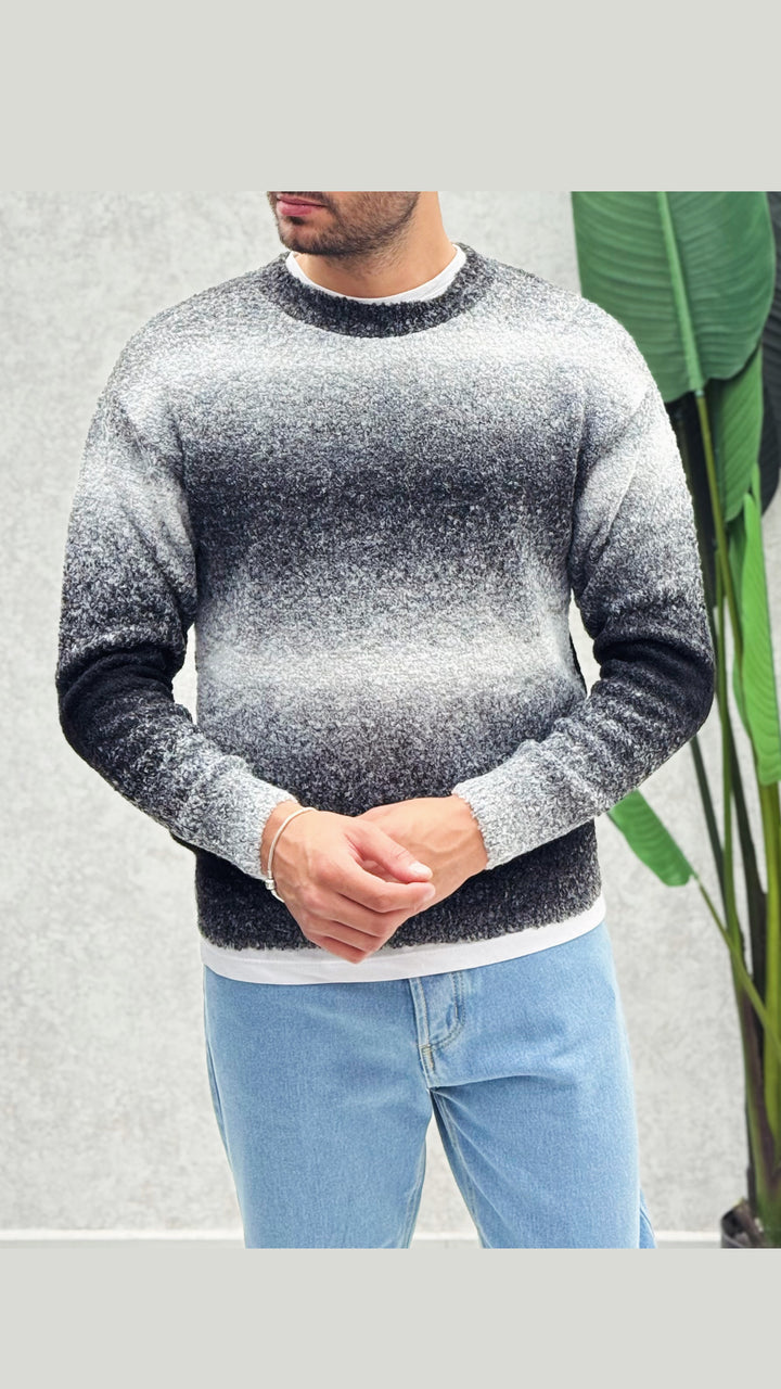 Maglione a girocollo in tessuto teddy con fantasia a colori sfumato, vestibilità slim. Il modello 1.76 per 73kg indossa M