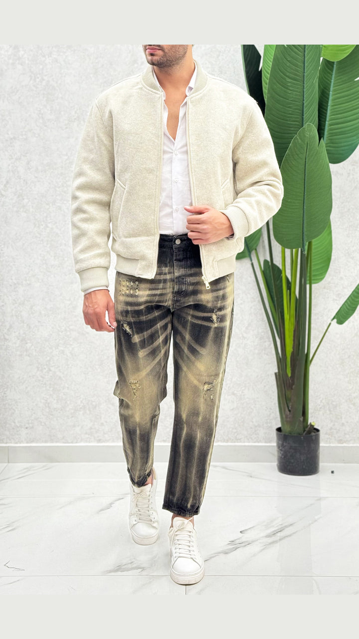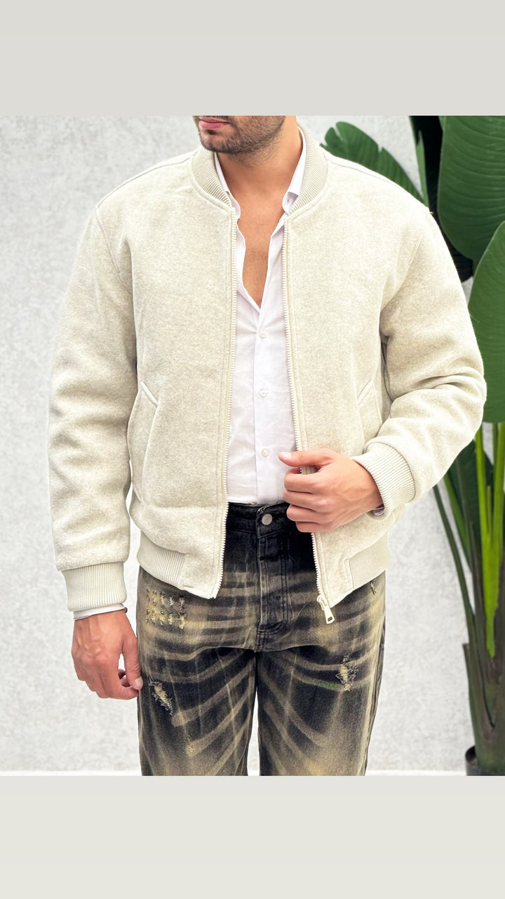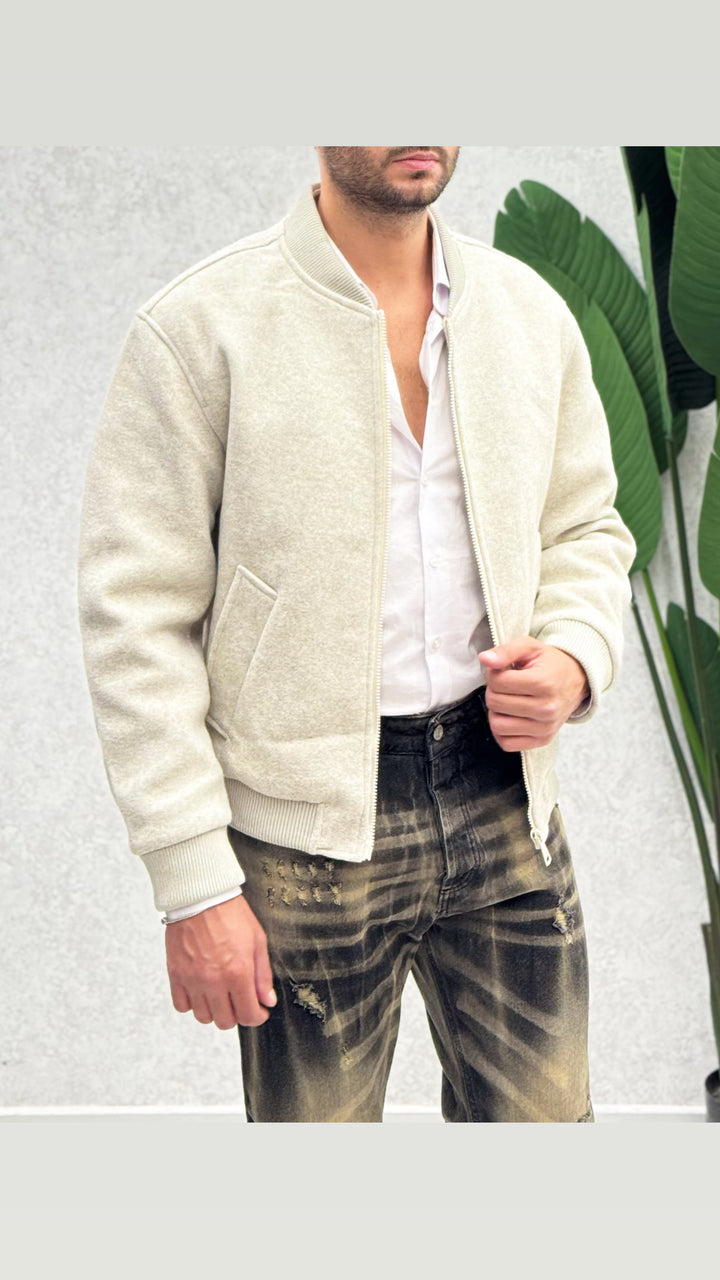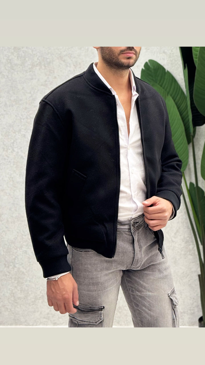 Giubbotto con collo coreano in tessuto panno, vestibilità slim. Il modello 1,76 per 73kg indossa M