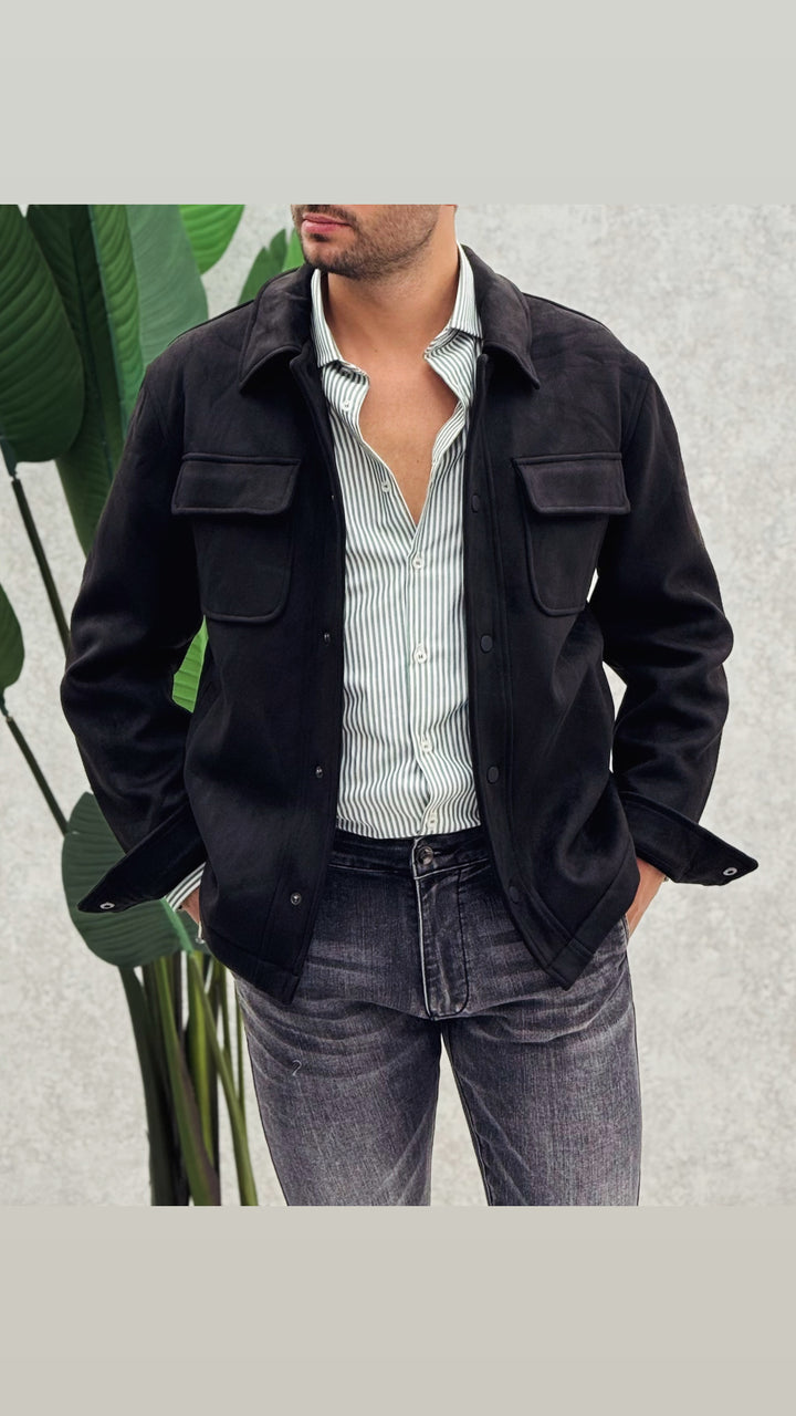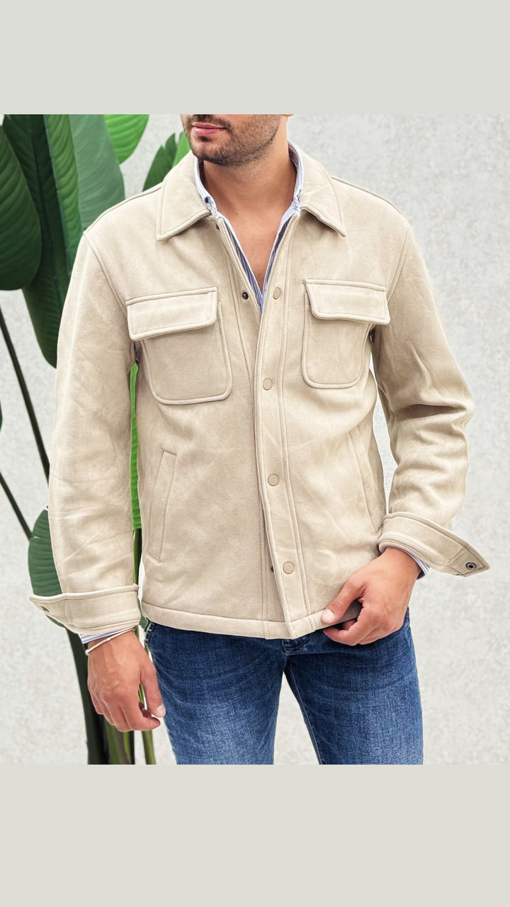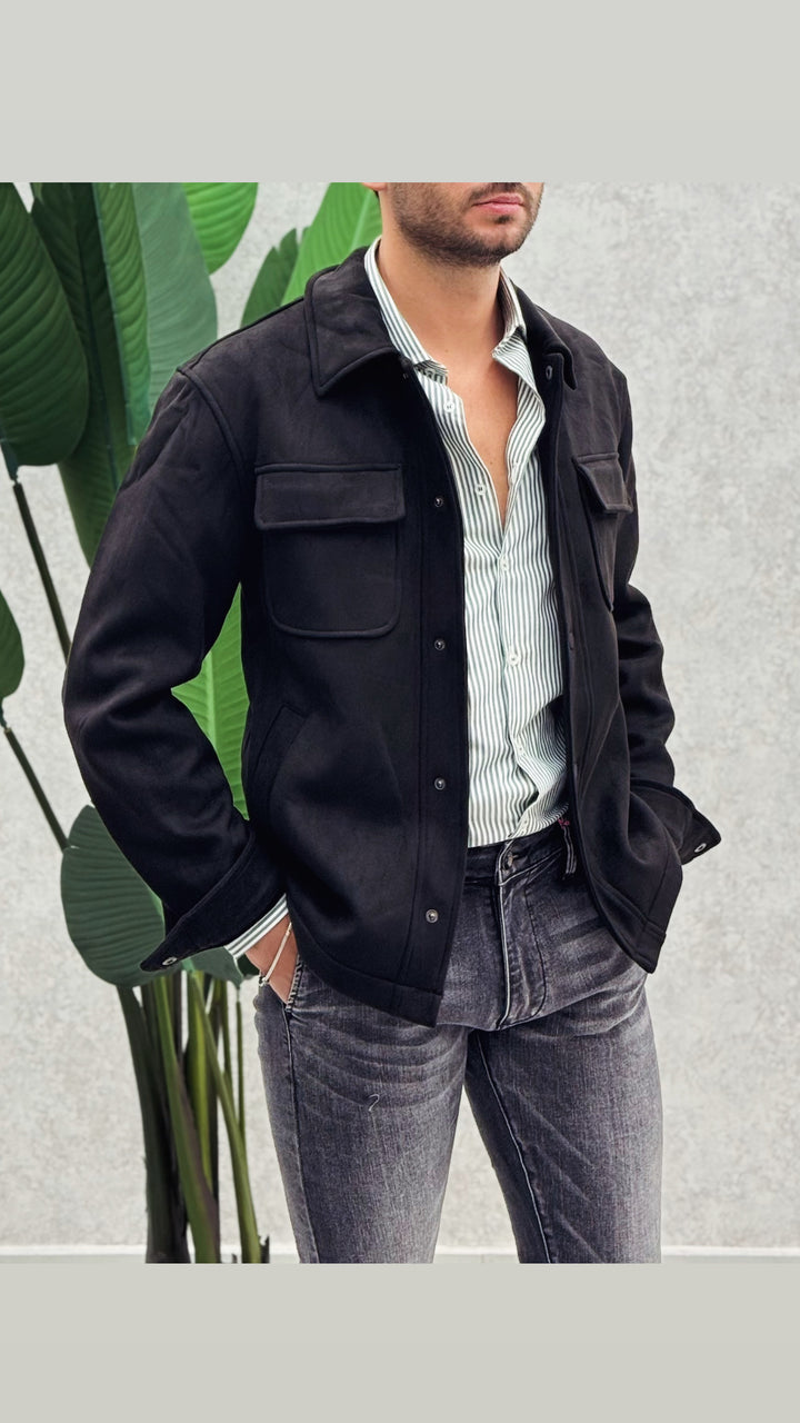 Jacket in tessuto eco renna, chiusura con bottoni a ciappa, tasconi sul davanti. Vestibilità regolare, il modello 1.76 per 73kg indossa M