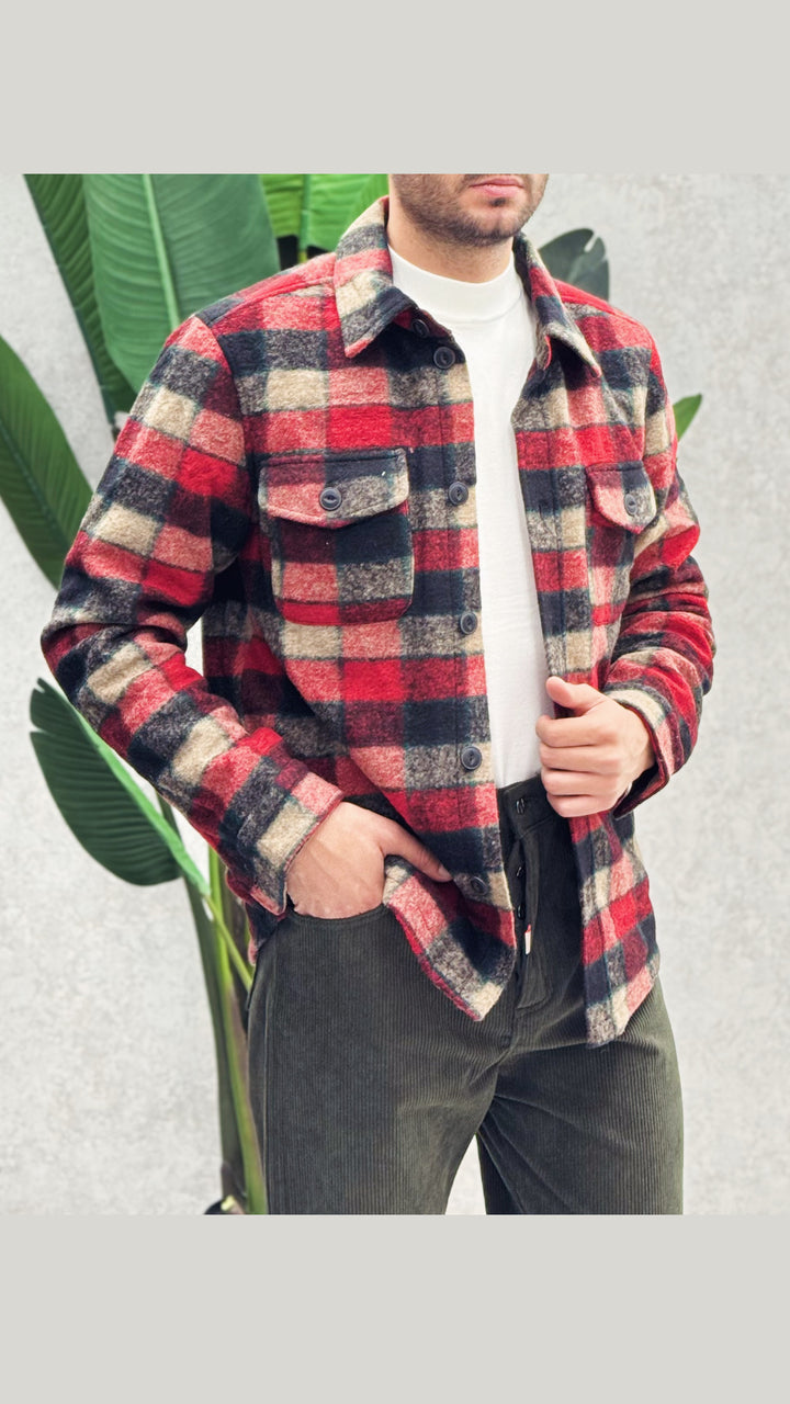 Jacket in tessuto flanella con fantasia a quadri, unica colorazione, vestibilità regolare. Il modello 1.376 per 73kg indossa M