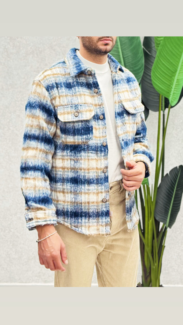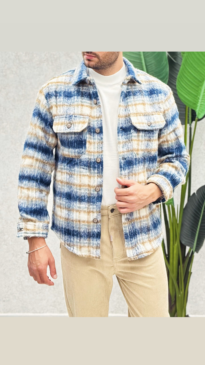 Jacket in tessuto flanella con fantasia a quadri sfumato, vestibilità regolare. Il modello 1.76 per 73kg indossa M
