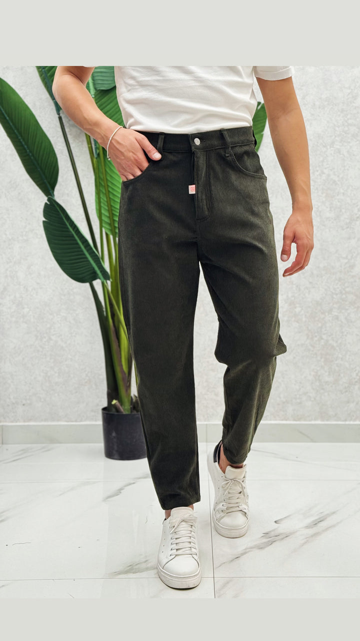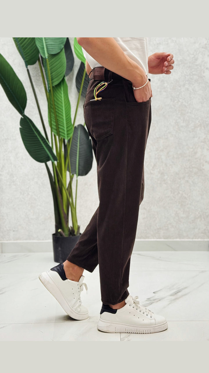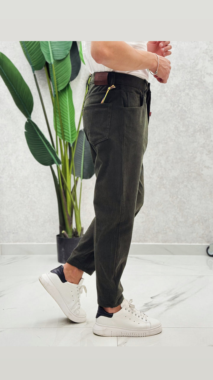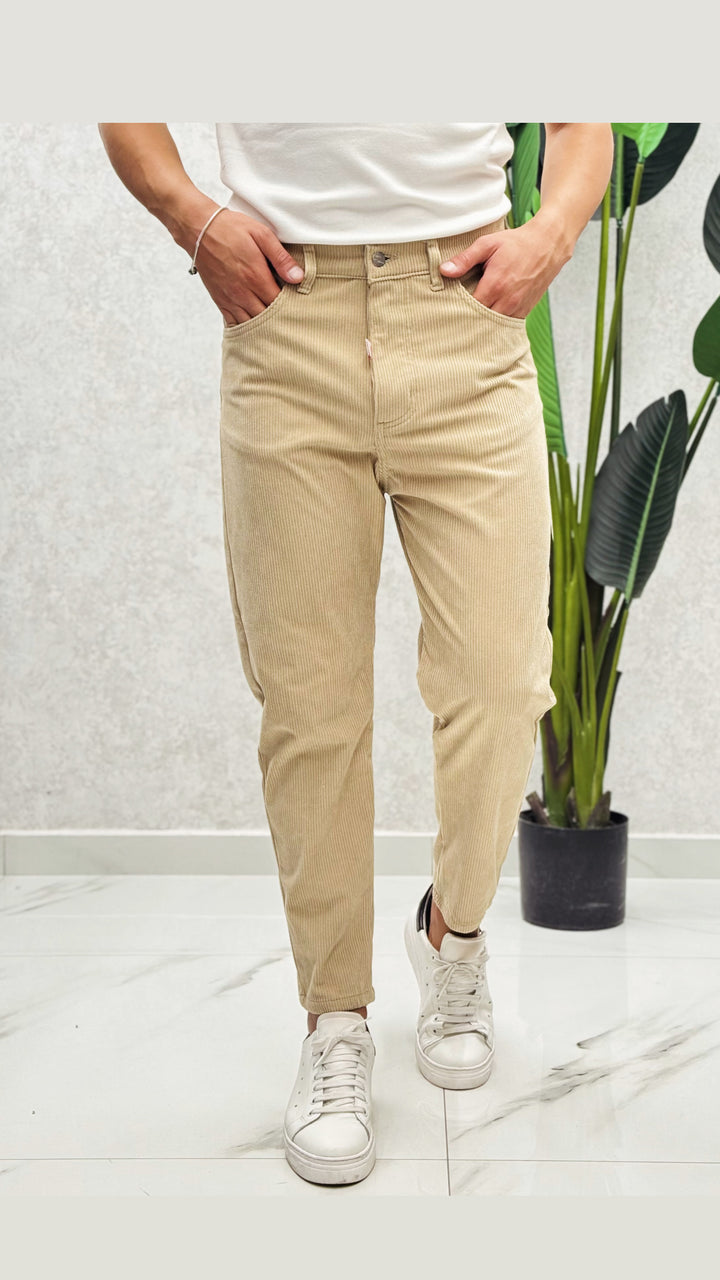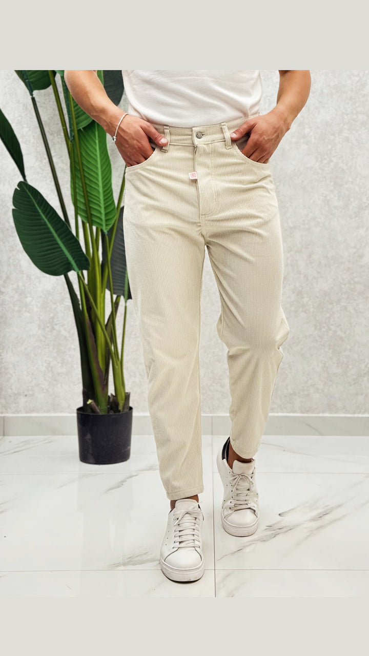 Jeans in tessuto costine velluto, disponibile in diverse colorazioni. Vestibilità comoda, il modello 1.76 per 73kg indossa 44