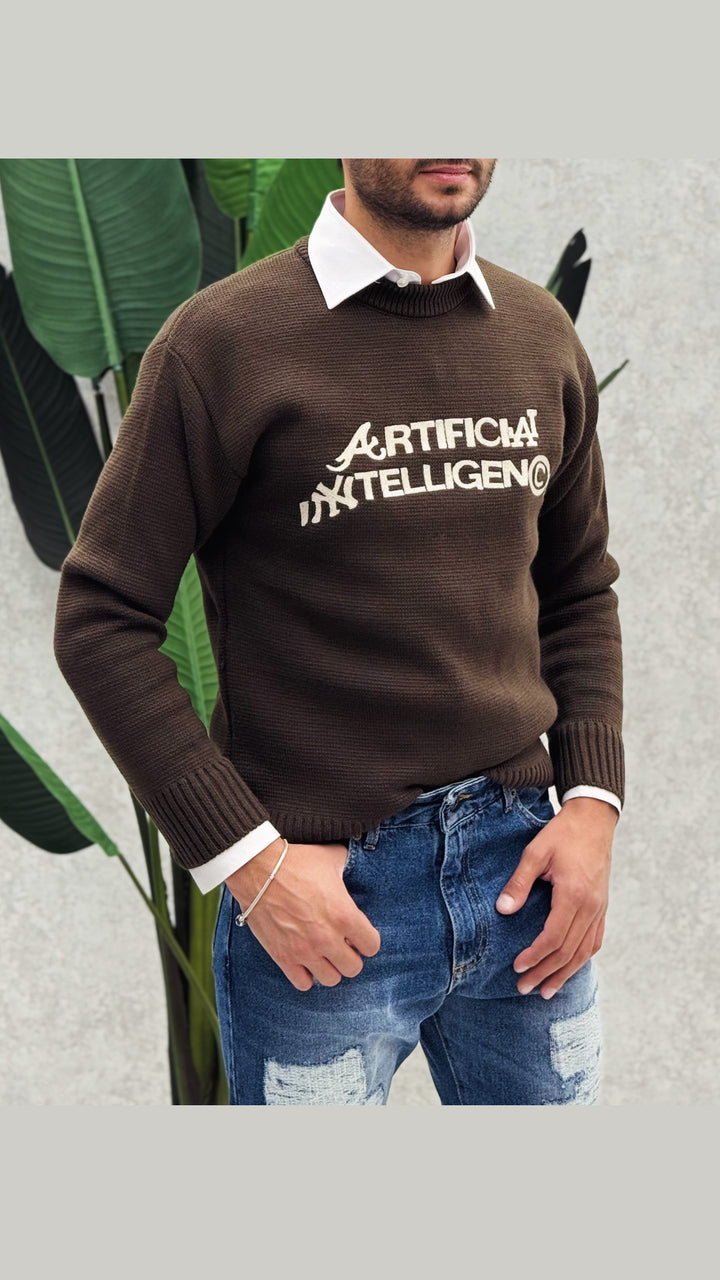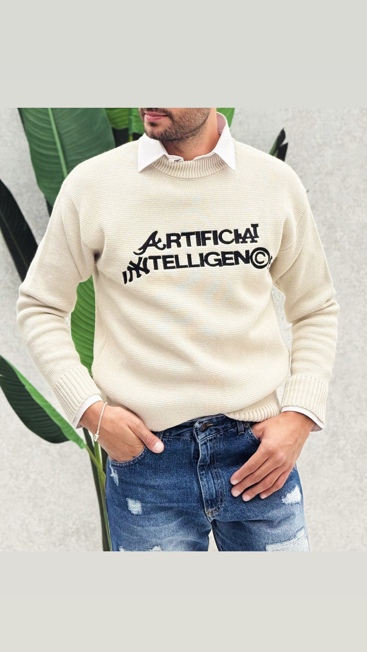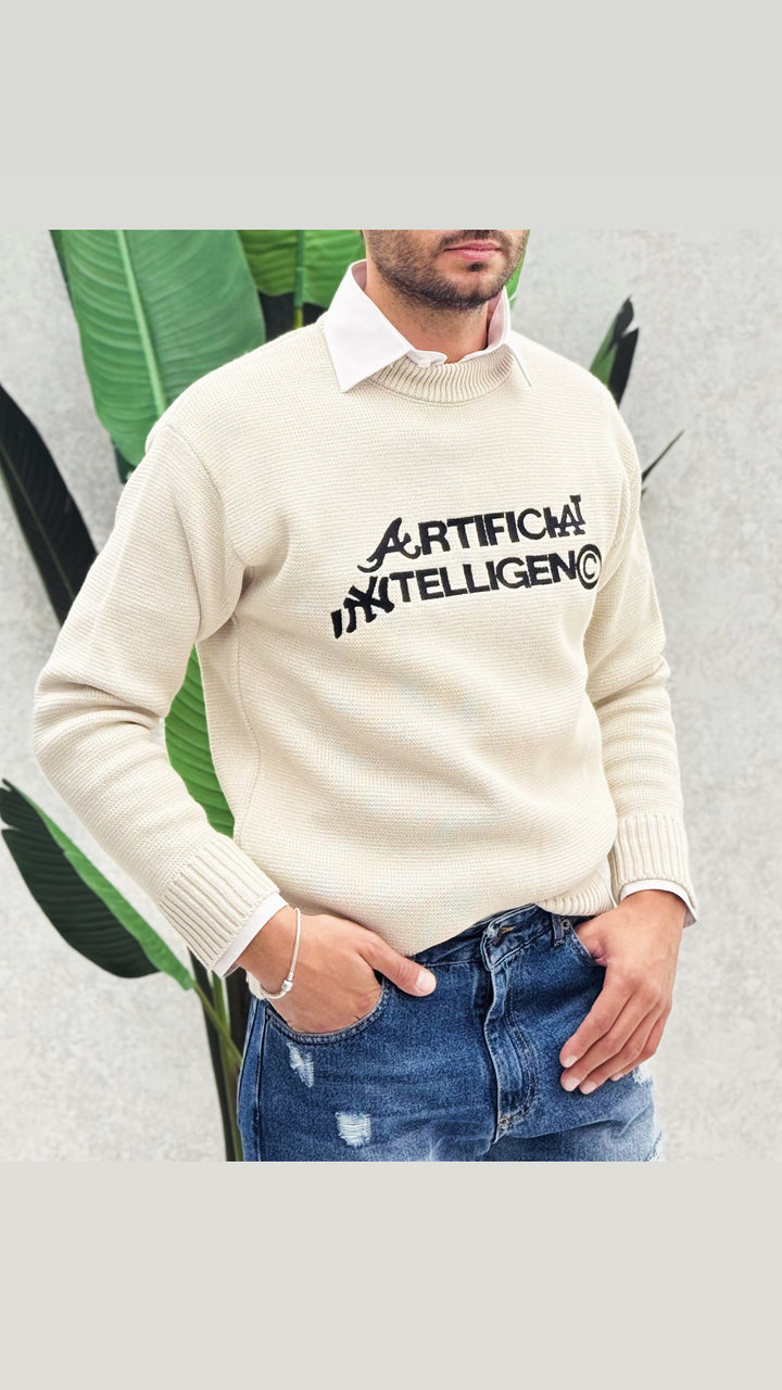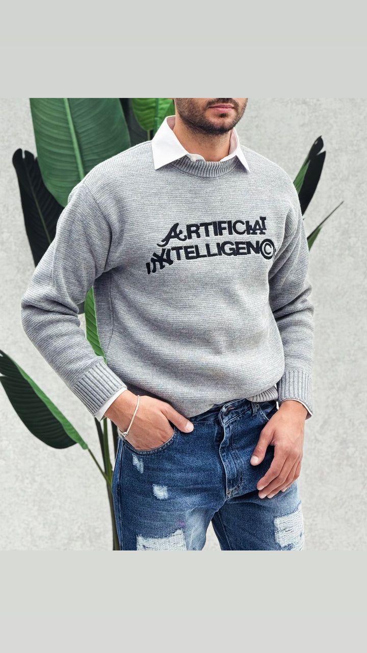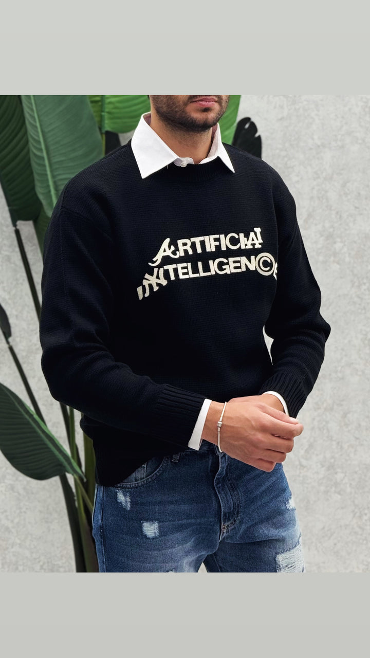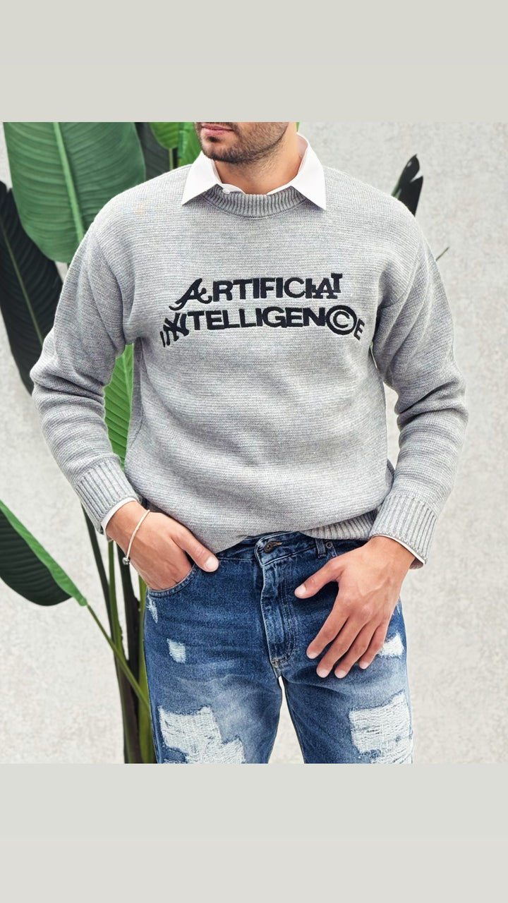 Maglione girocollo classico con colletto leggermente più alto per un maggior confort, vestibilità regolare, stampa cucita. Il modello in foto 1,76 x 73 e indossa M