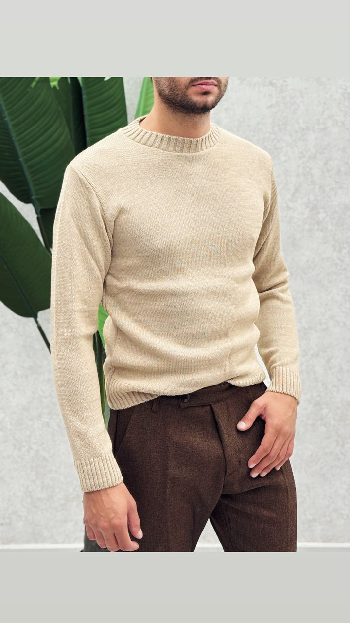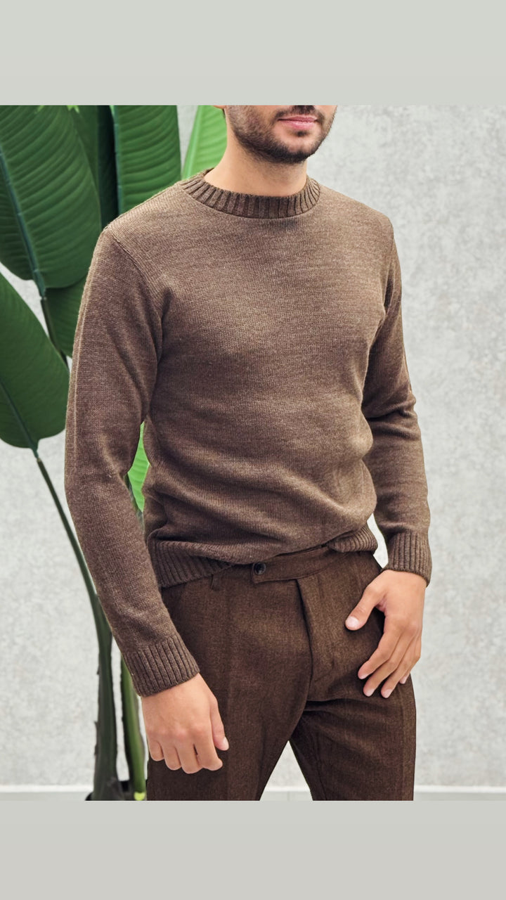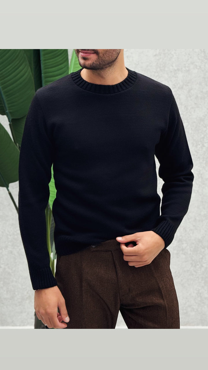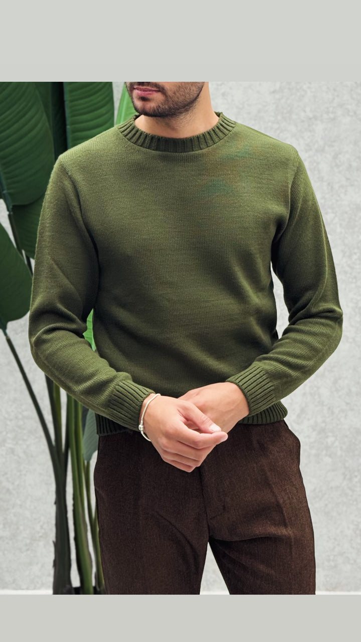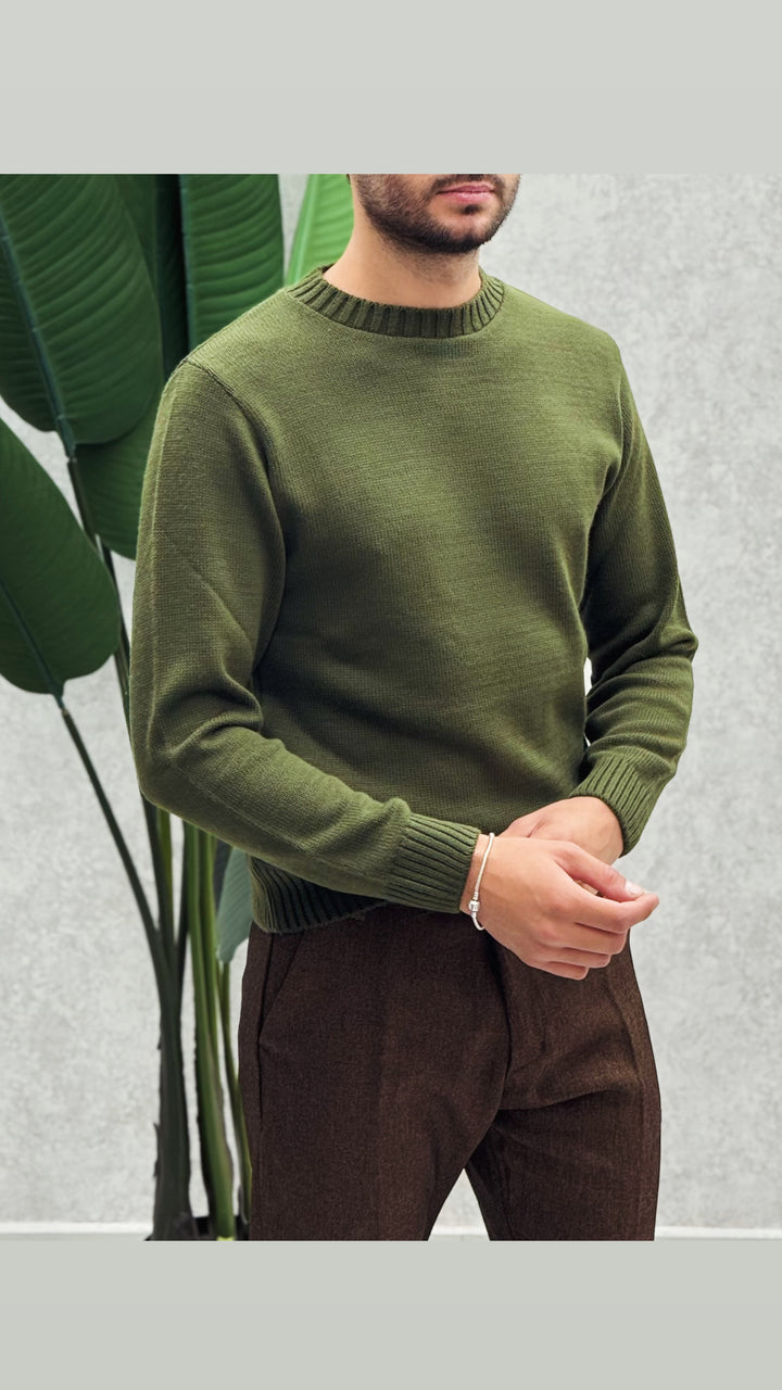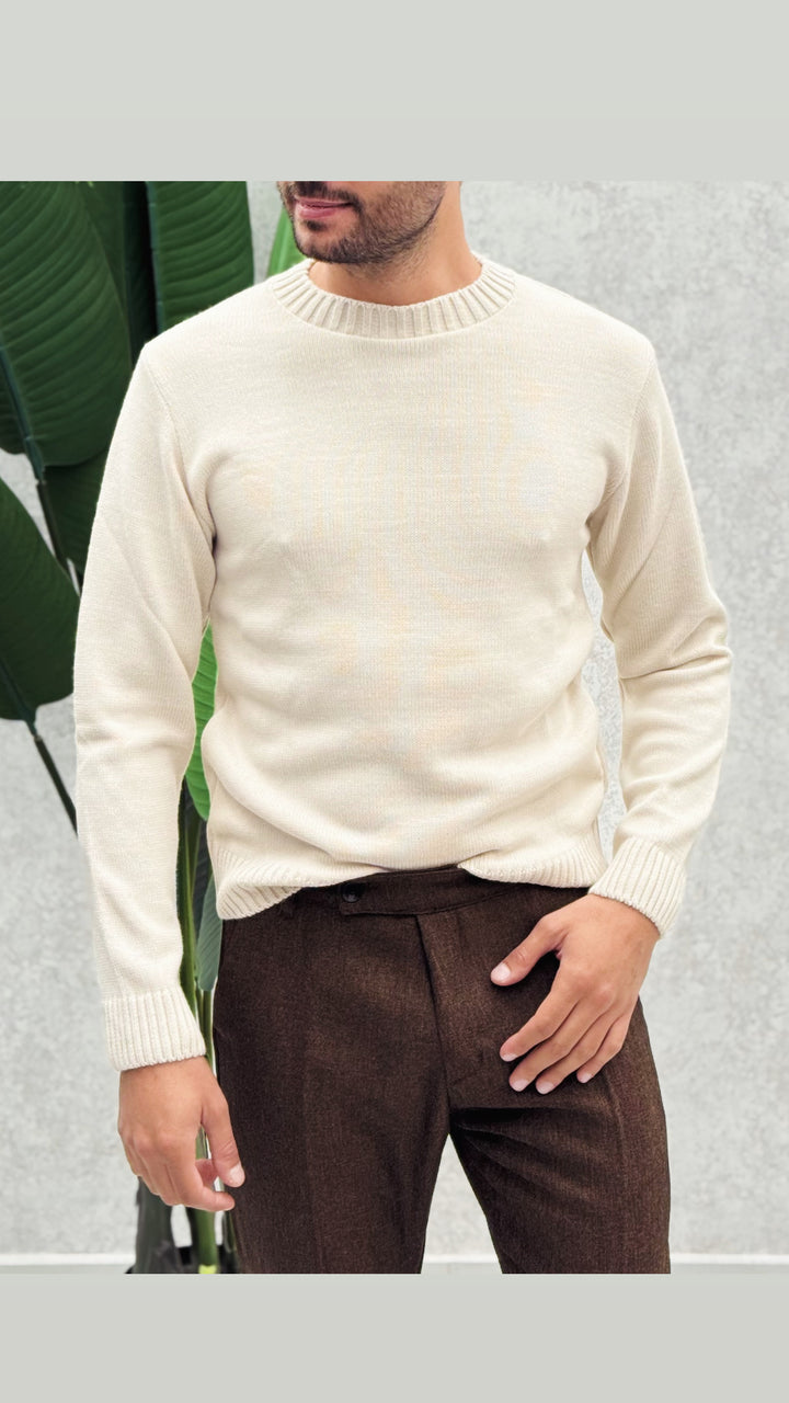 Maglione classico girocollo con dettagli e vestibilità top, adatto per ogni outift e principalmente caldo. Il modello in foto 1,76 x 73 e indossa M
