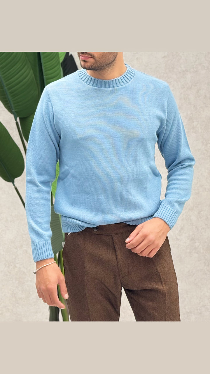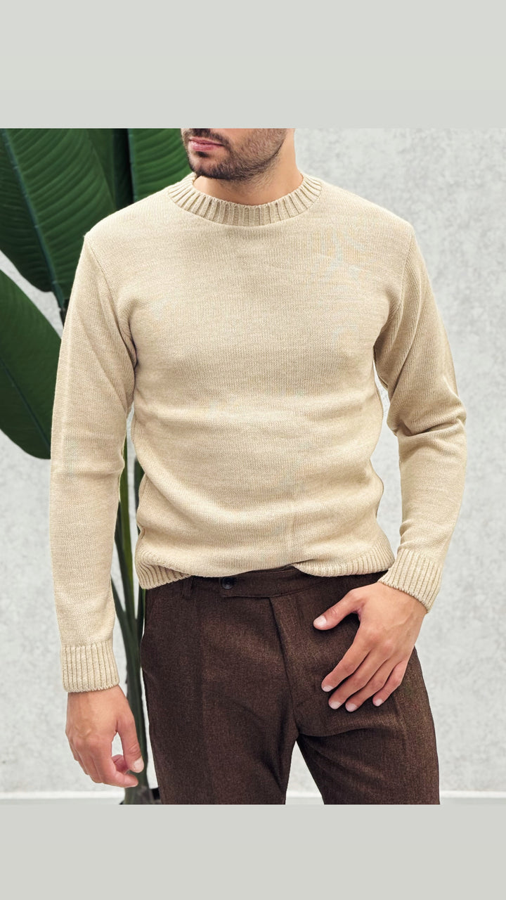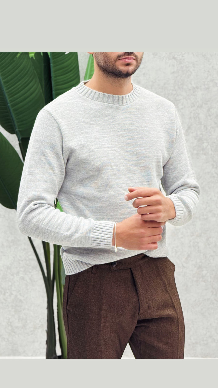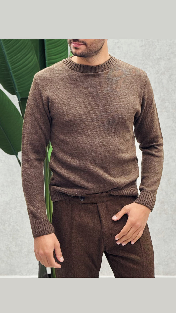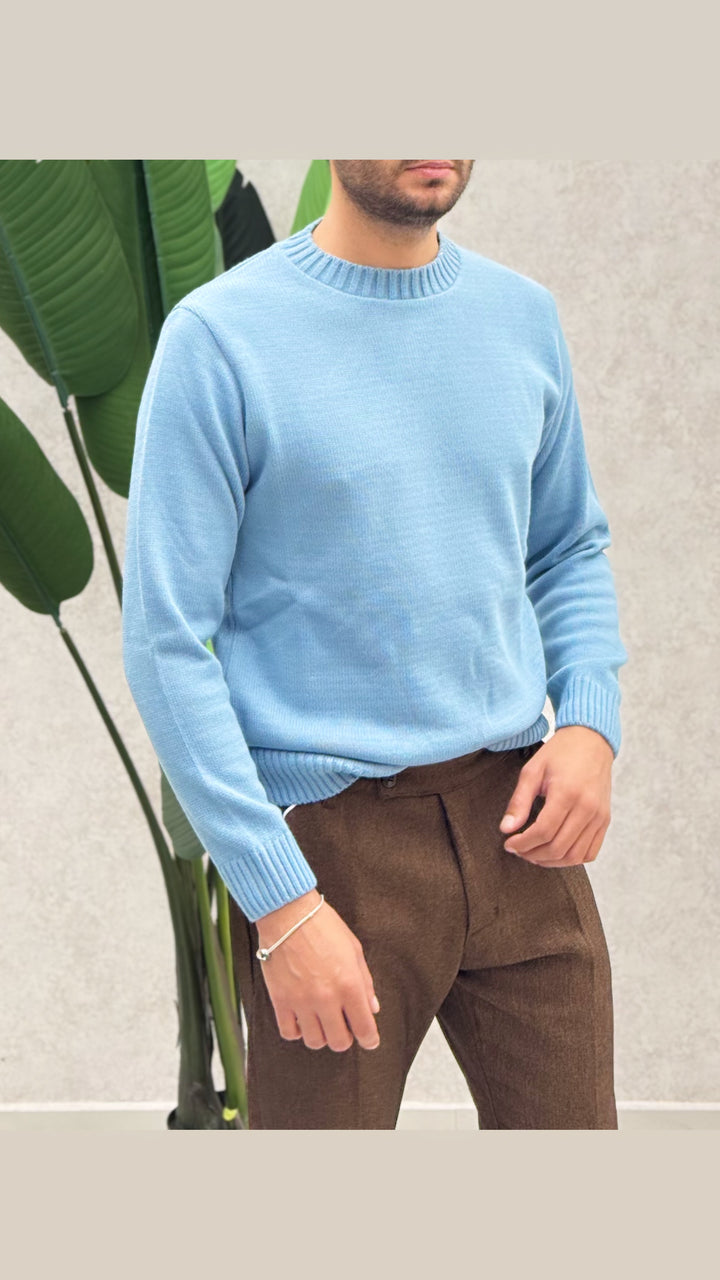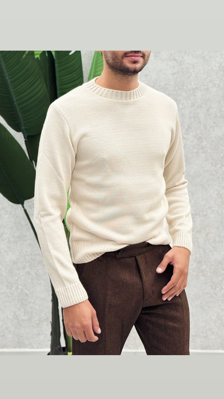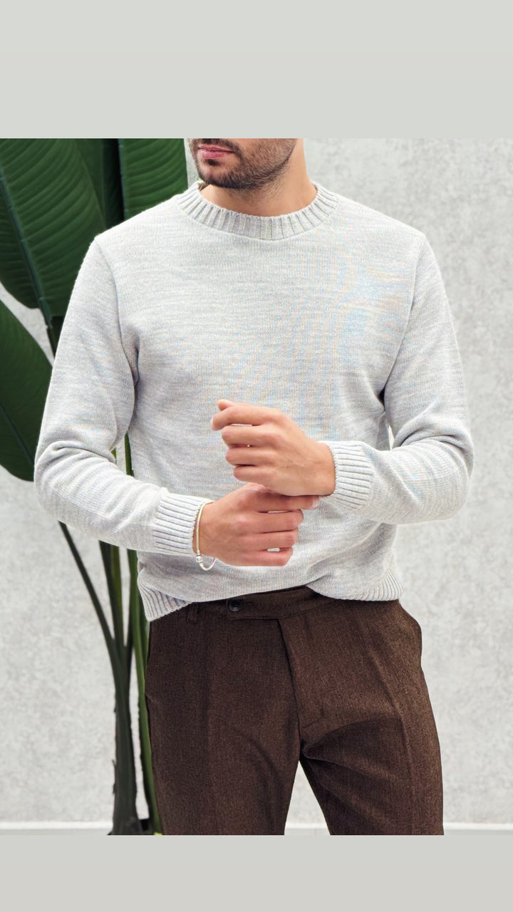 Maglione classico girocollo con dettagli e vestibilità top, adatto per ogni outift e principalmente caldo. Il modello in foto 1,76 x 73 e indossa M