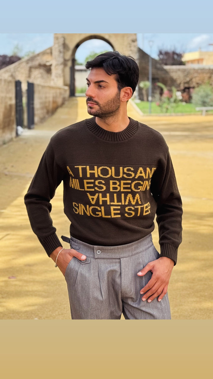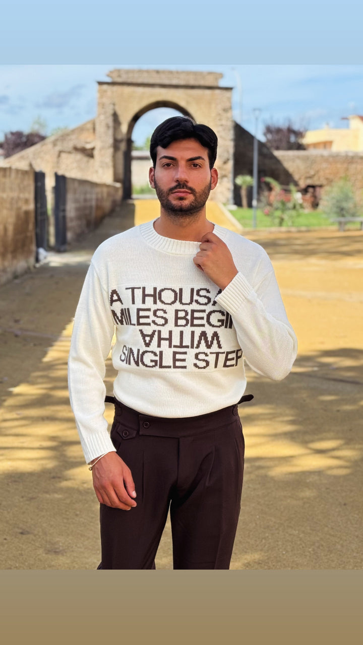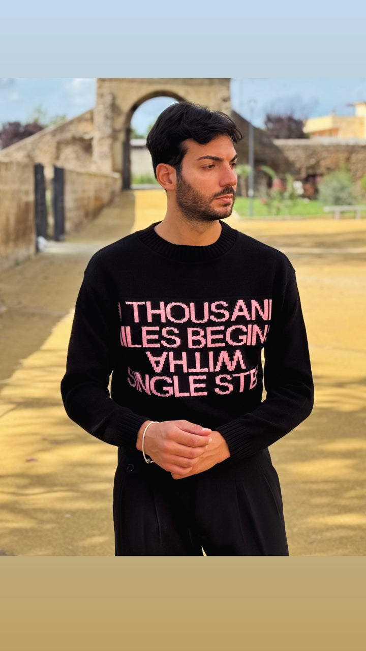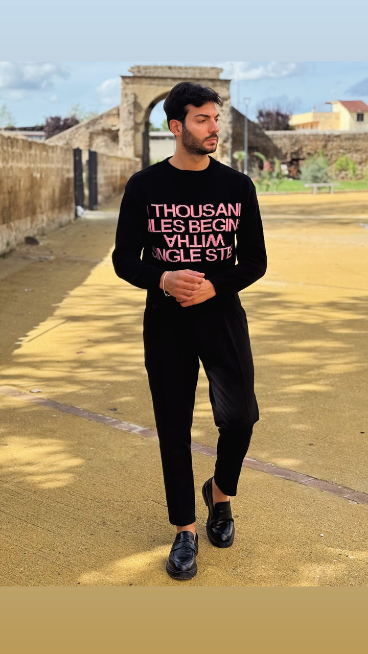 Maglione girocollo, con stampa scritta a contrasto, molla su polsini e fondo. Vestibilità regolare, il modello 1,76 per 73kg indossa S