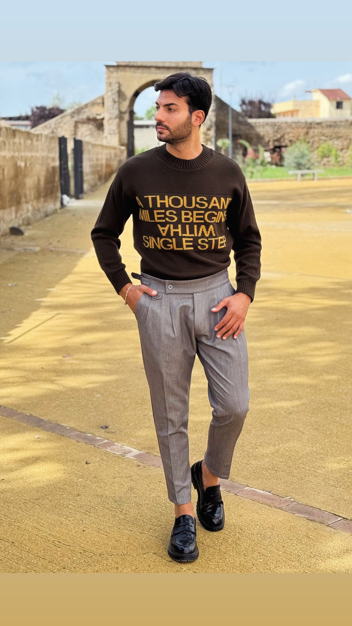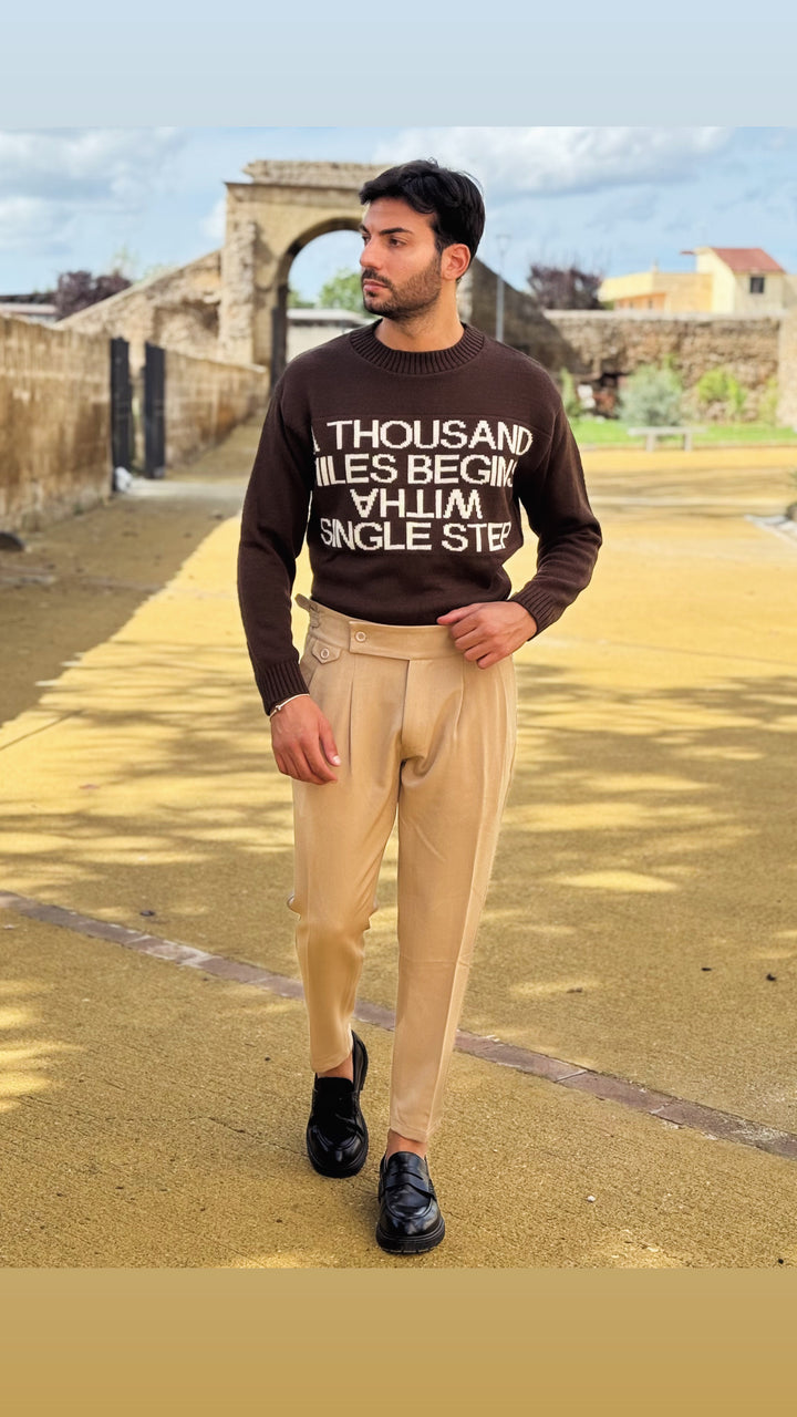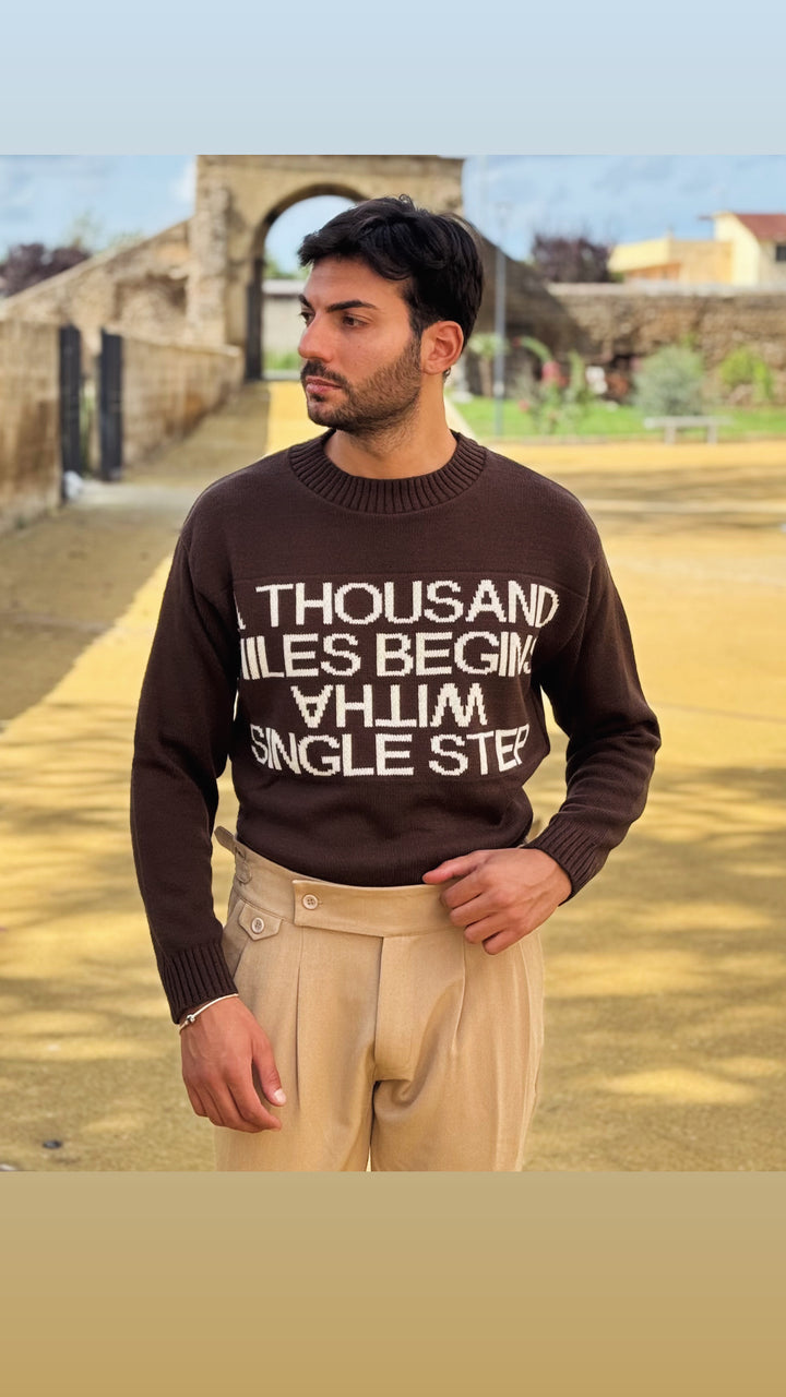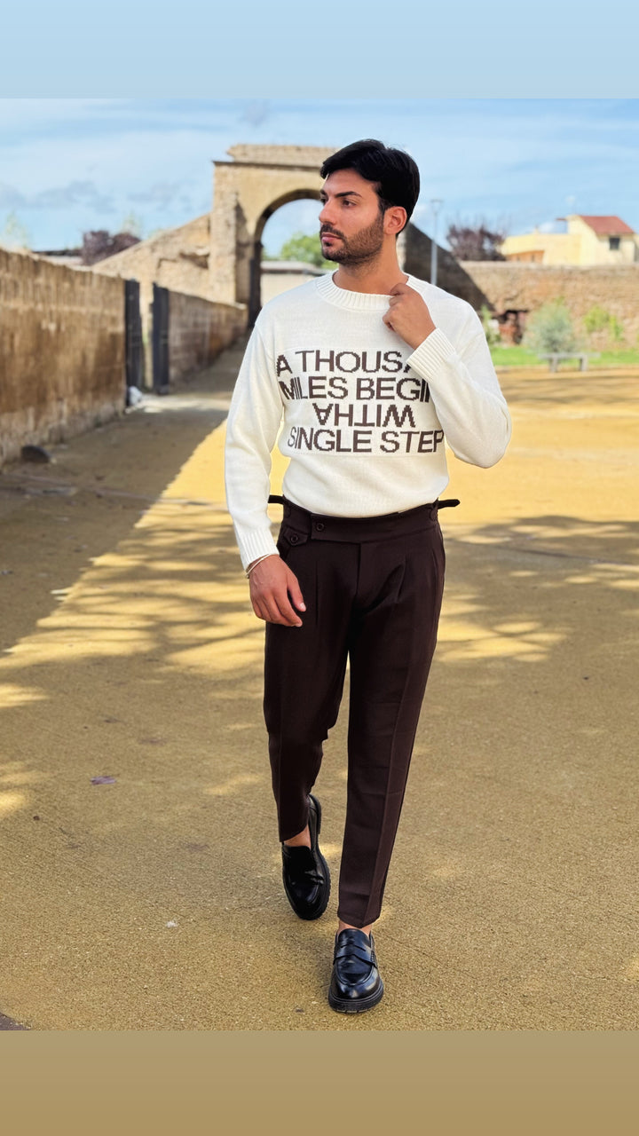Maglione girocollo, con stampa scritta a contrasto, molla su polsini e fondo. Vestibilità regolare, il modello 1,76 per 73kg indossa S