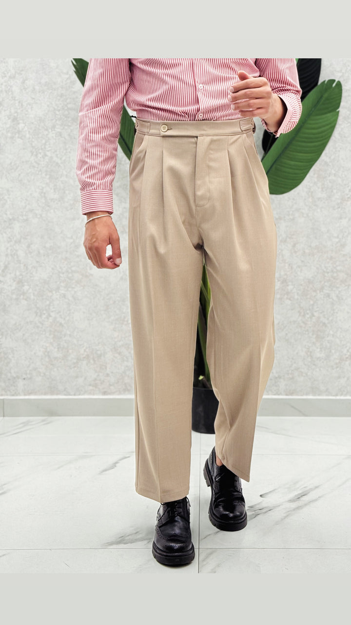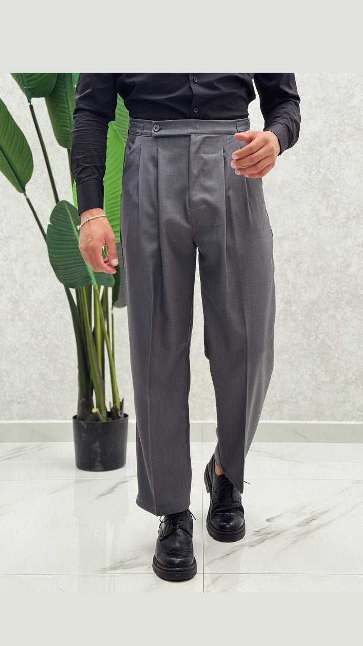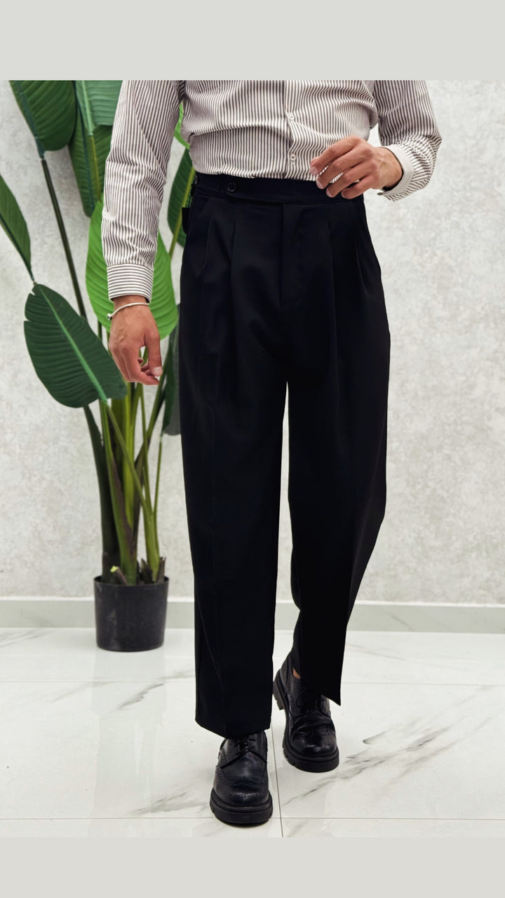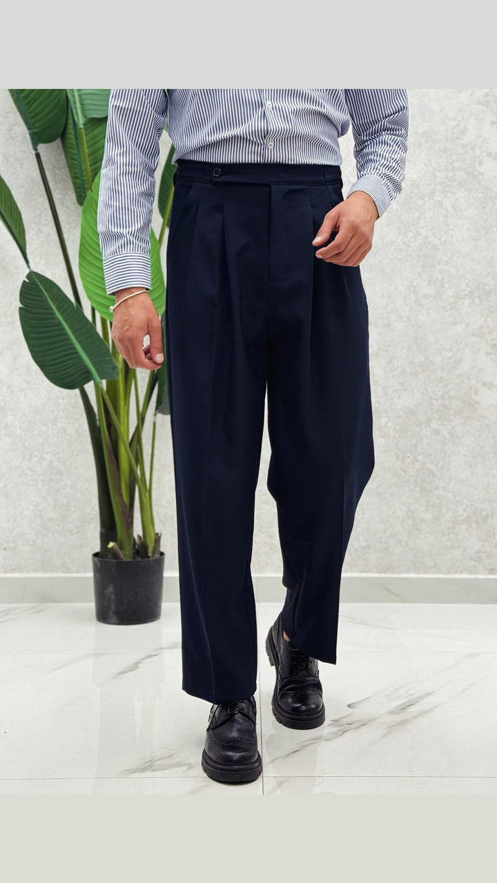 Il pantalone può essere indossa in due modi: alto in vita con una vestibilità over corto; bassa vita con una vestibilità più a fondo largo.