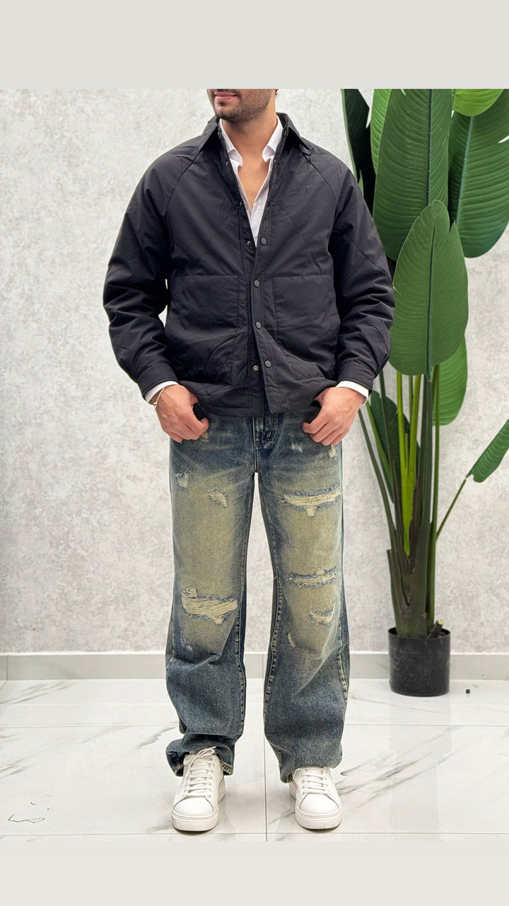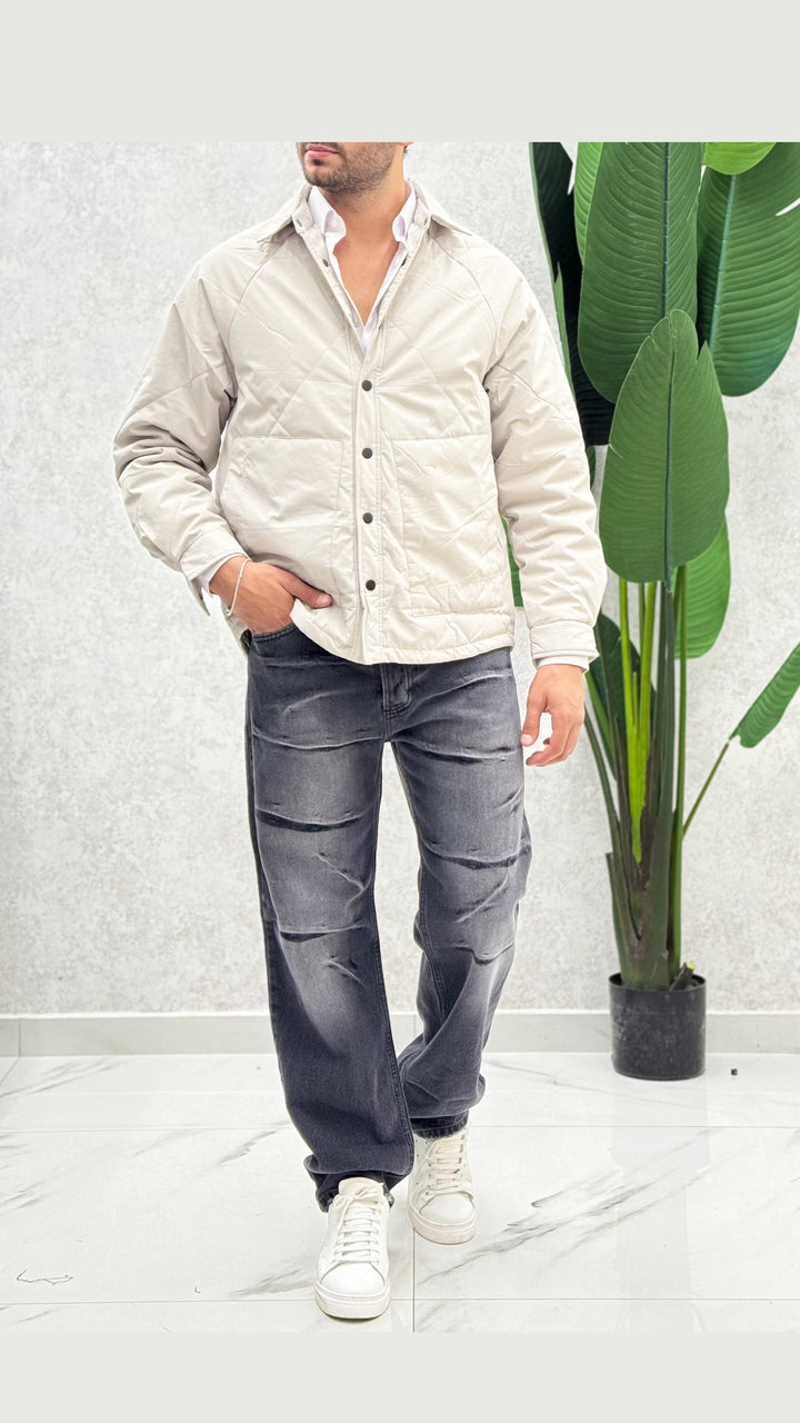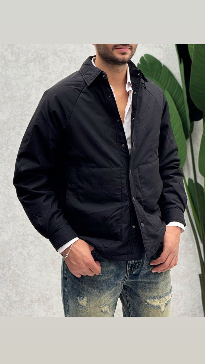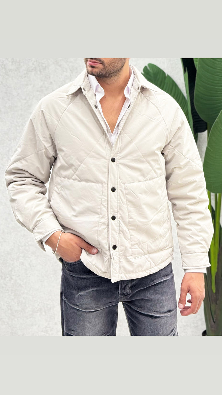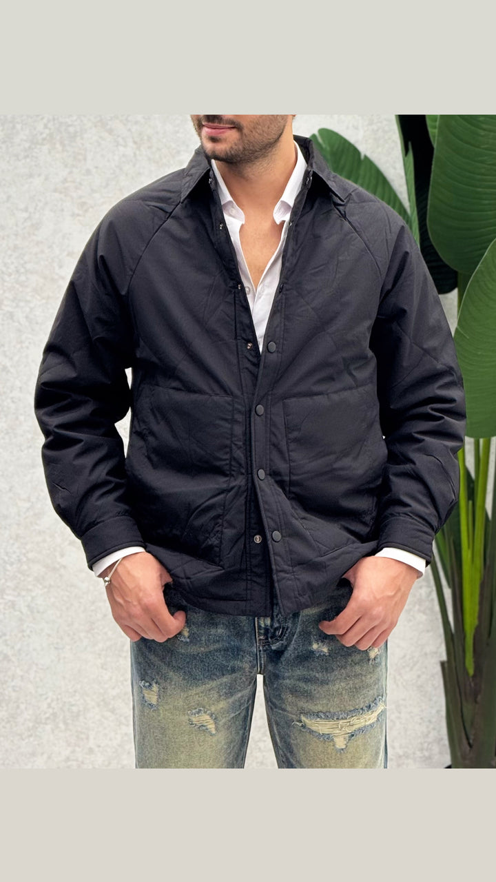 Piumino con cuciture a rilievo a forma geometrica, tasca a toppa, chiusura con ciappe. Vestibilità regolare, il modello 1,76 per 73kg indossa M