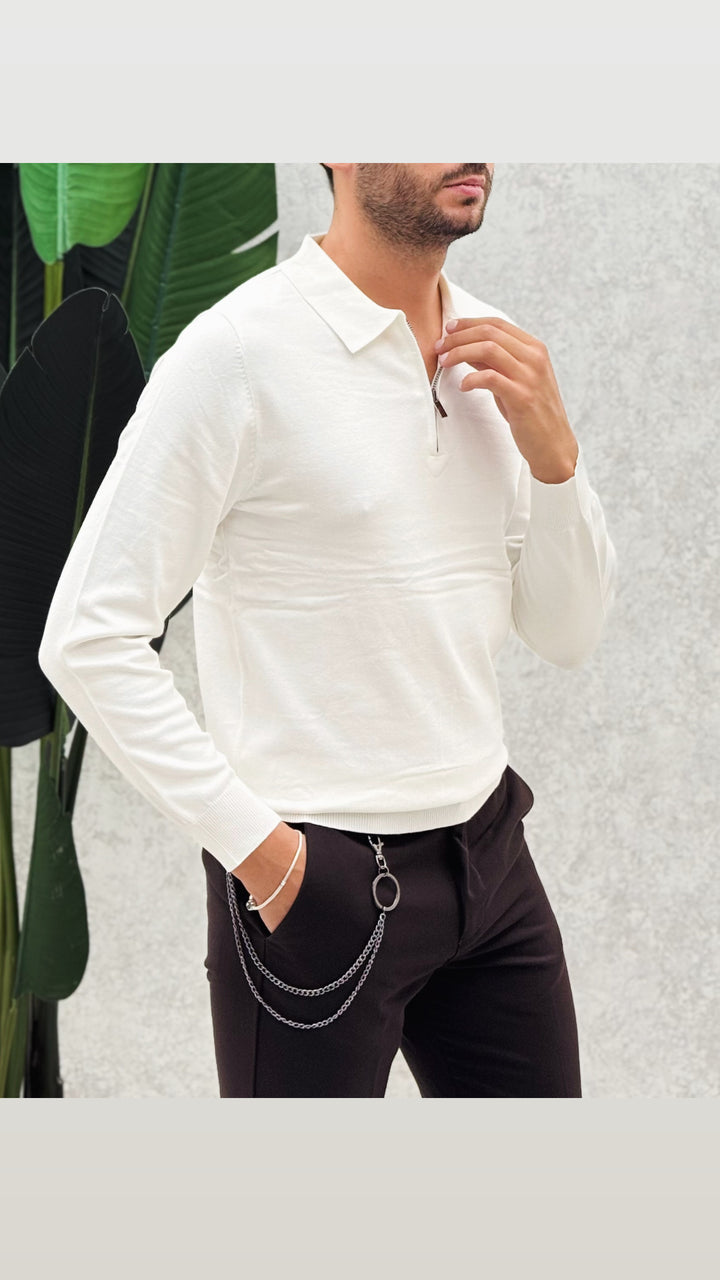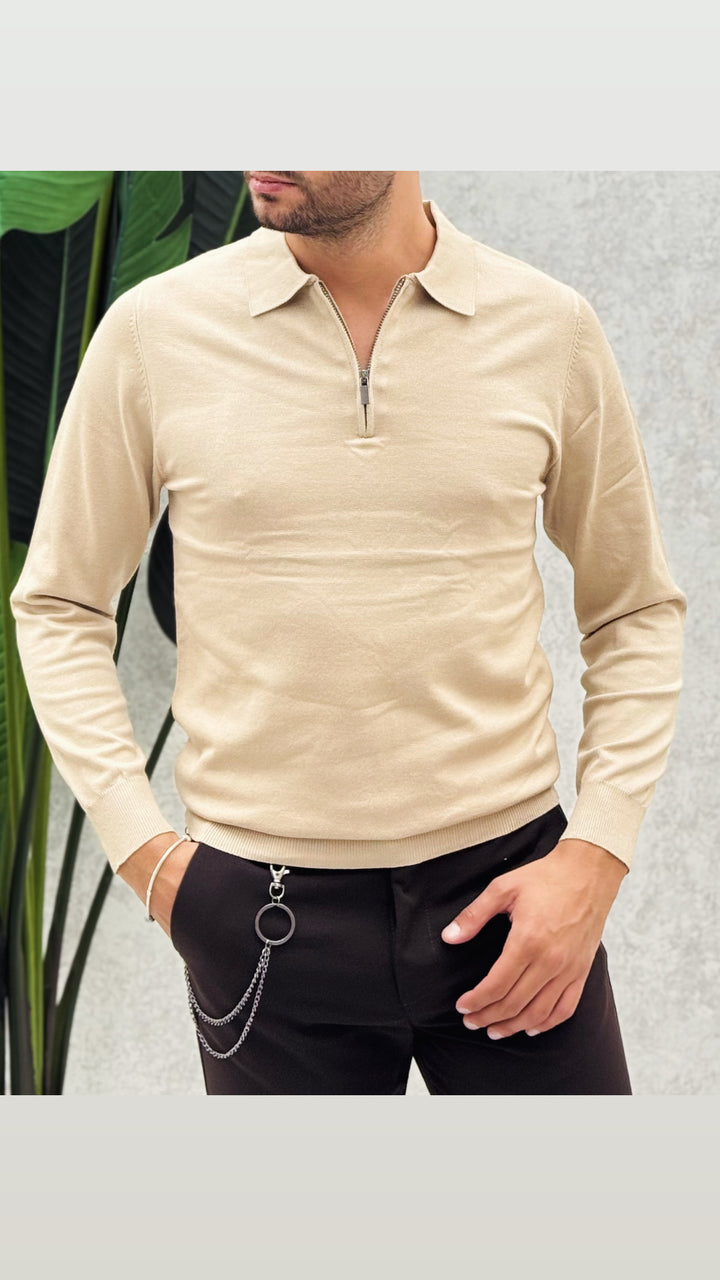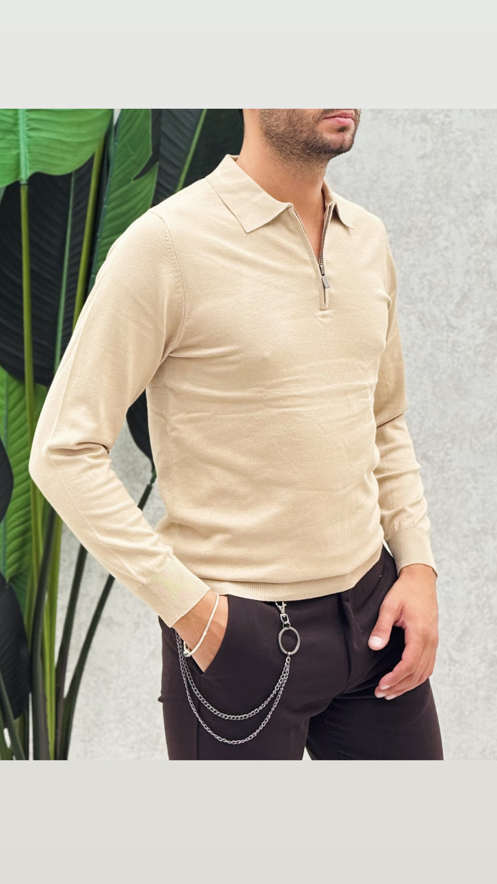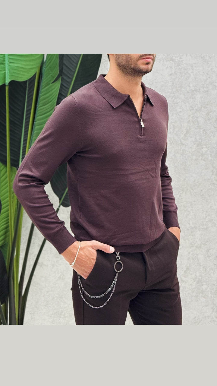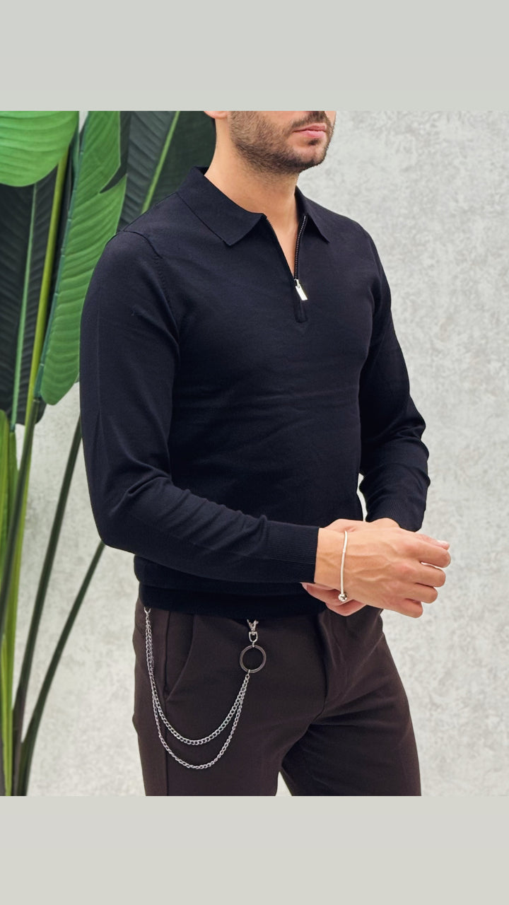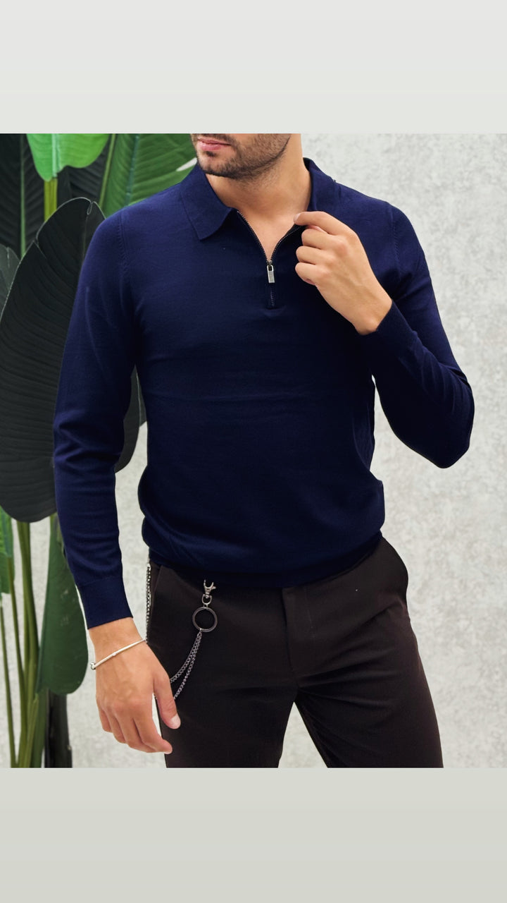 Polo in lana pettinata con mezza zip, adatta per i vostri outfit sia eleganti che casual. Vestibilità slim, il modello 1,76 per 73kg indossa M