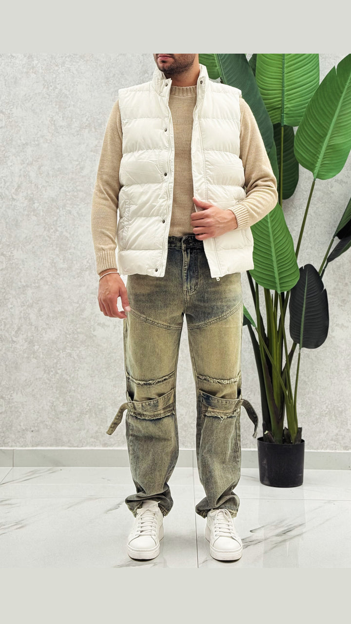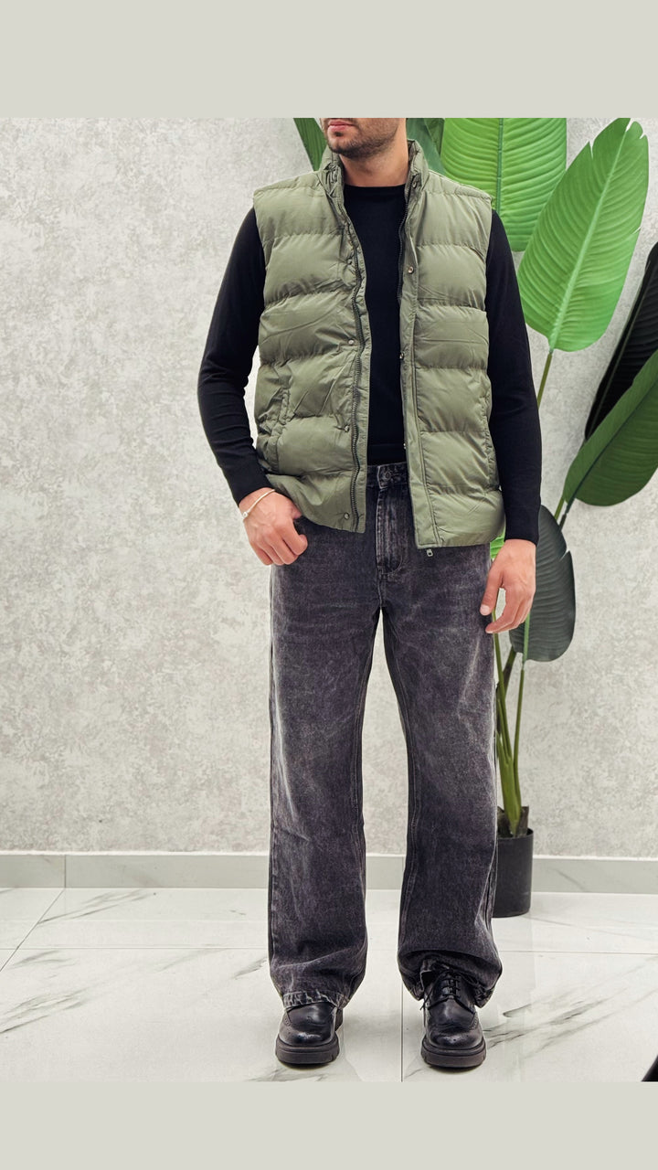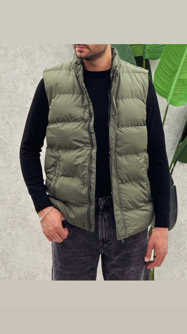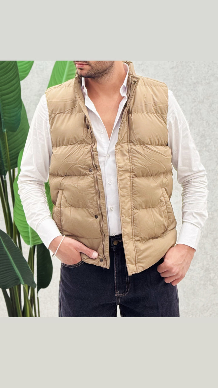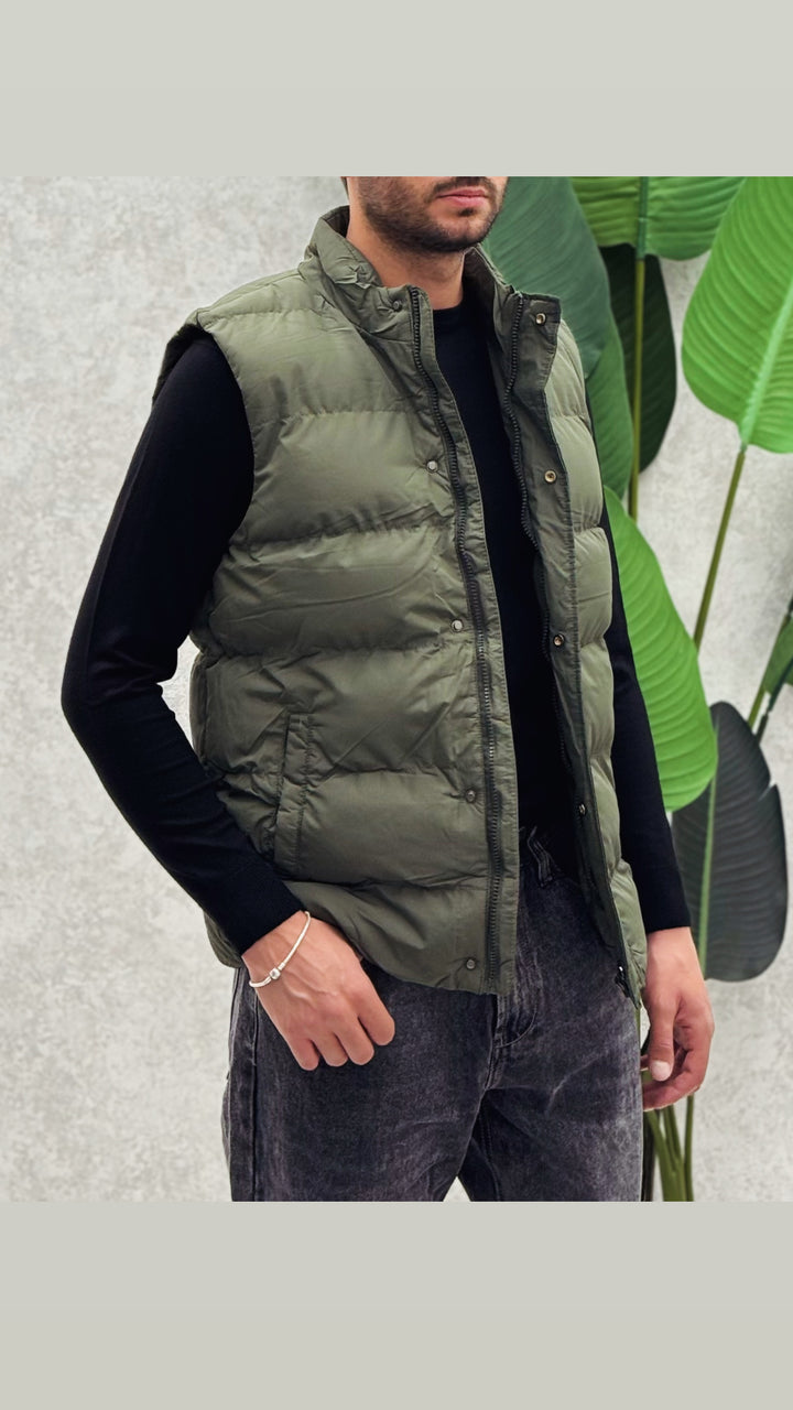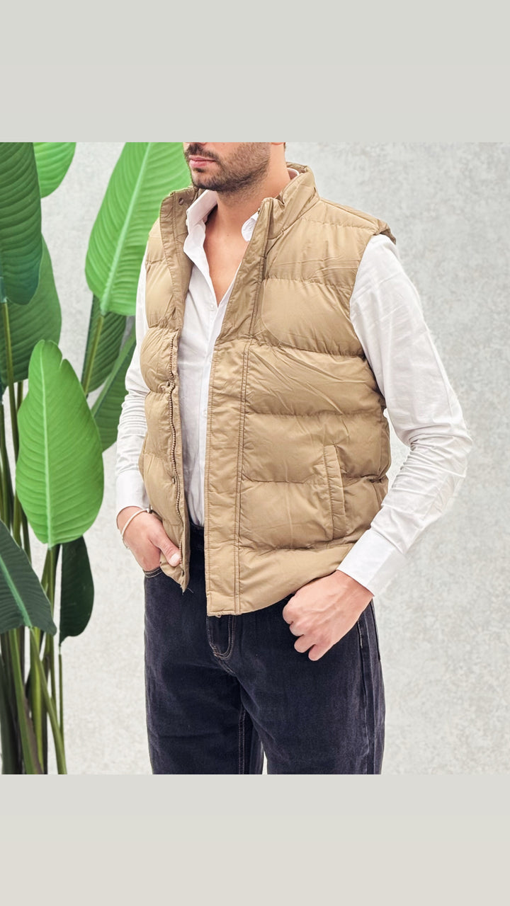 Smanicato imbottito con chiusura a zip e ciappe a scomparsa, vestibilità slim . Il modello 1,76 per 73kg indossa M