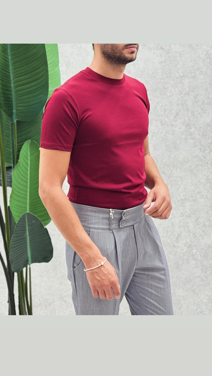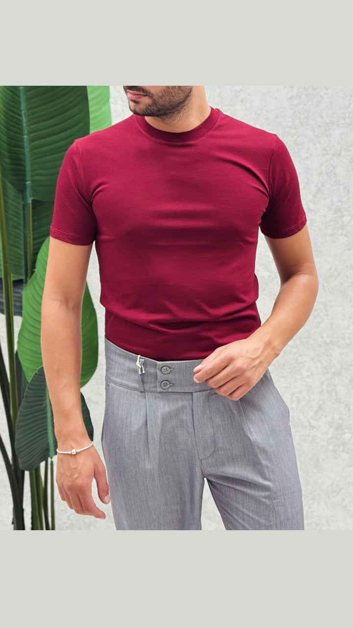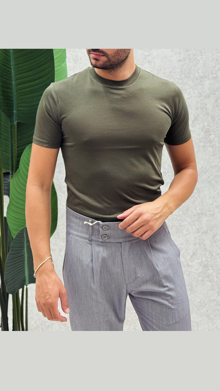 T-shirt in tessuto viscosa, perfetta come sottogiacca. Vestibilità slim, il modello 1,76 per 73kg indossa M