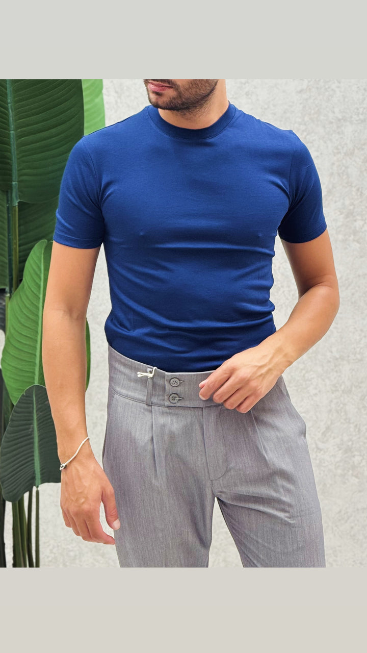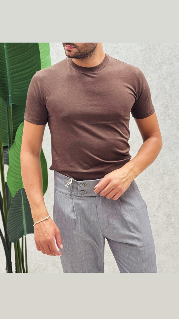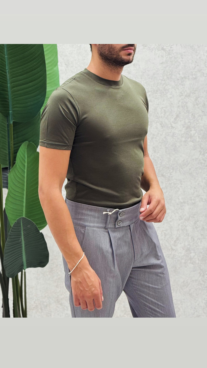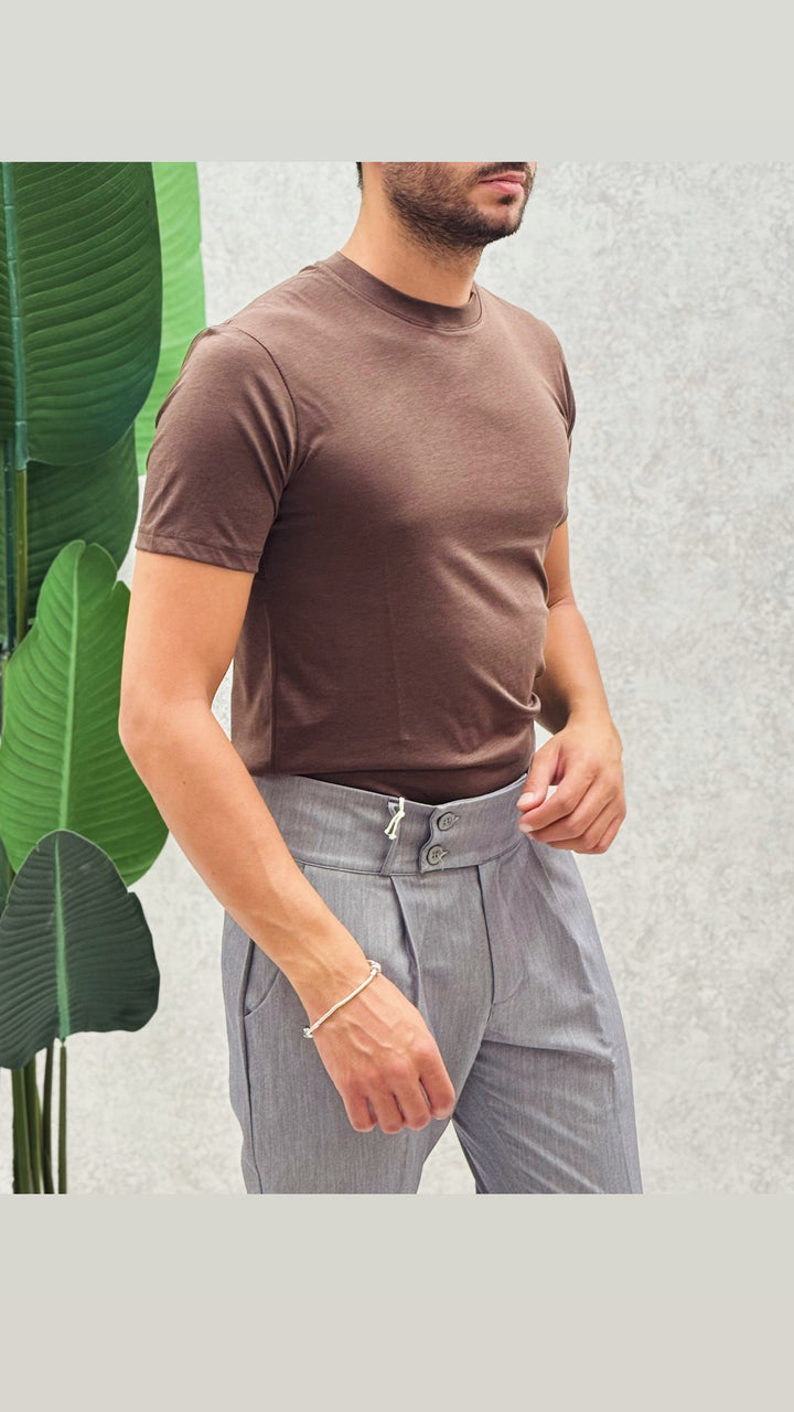 T-shirt in tessuto viscosa, perfetta come sottogiacca. Vestibilità slim, il modello 1,76 per 73kg indossa M