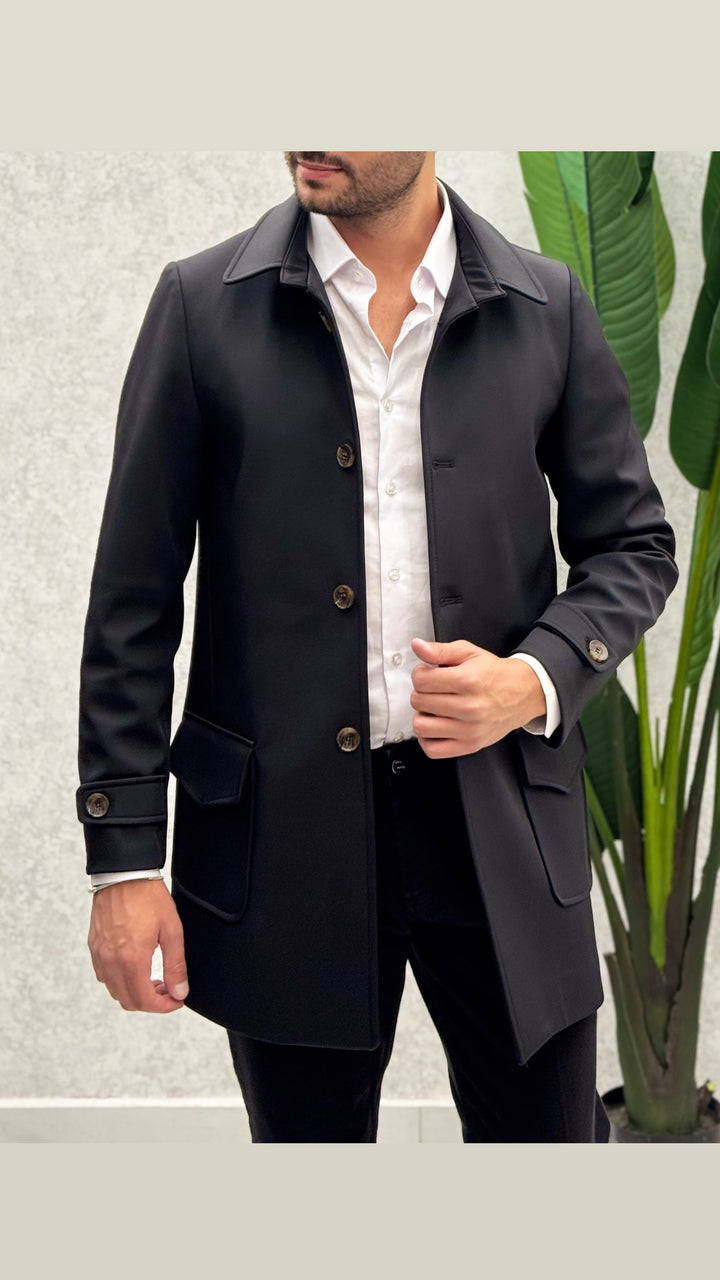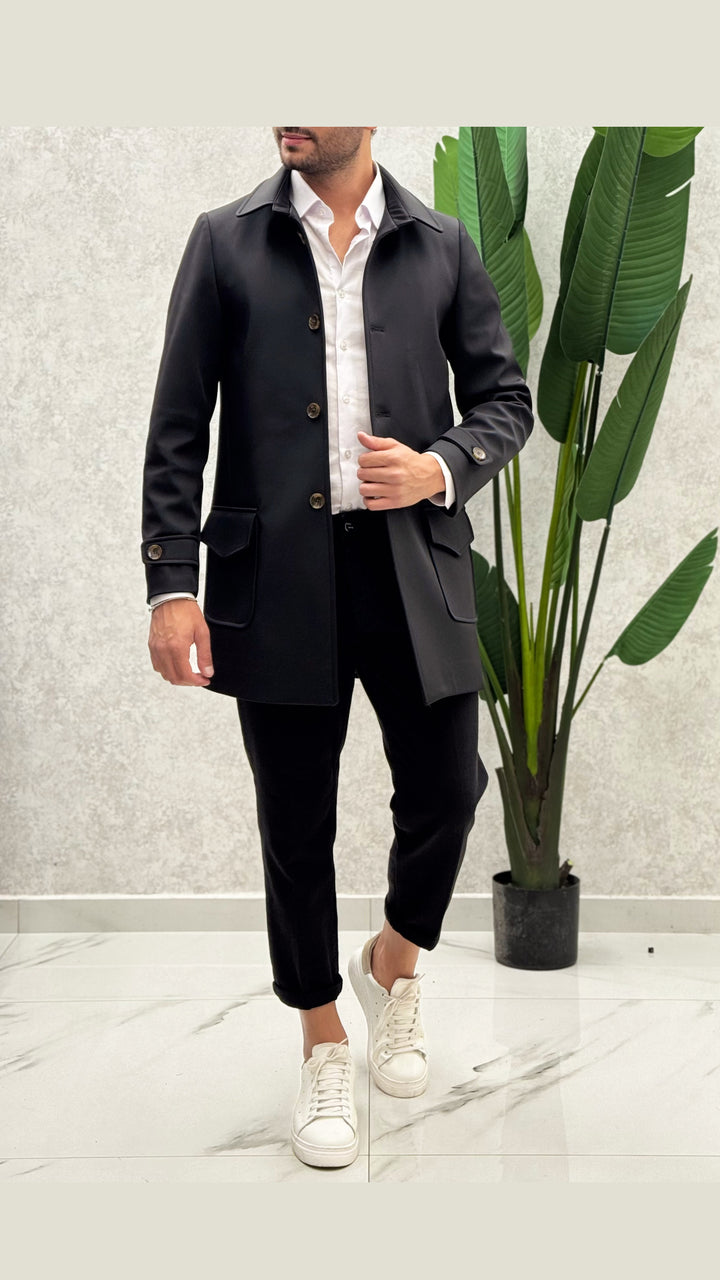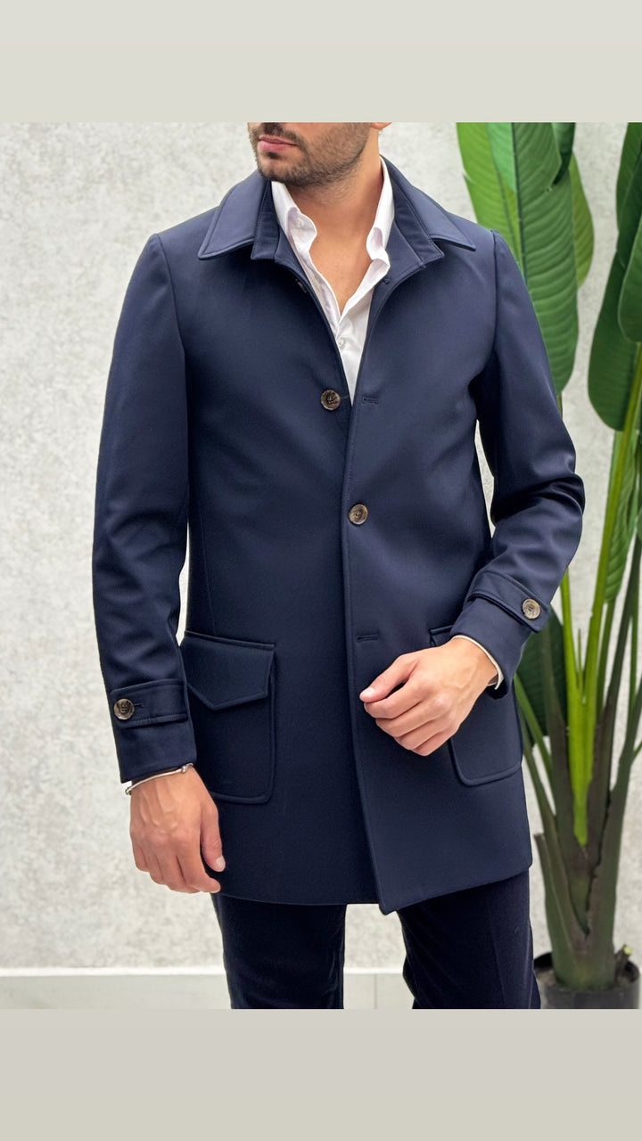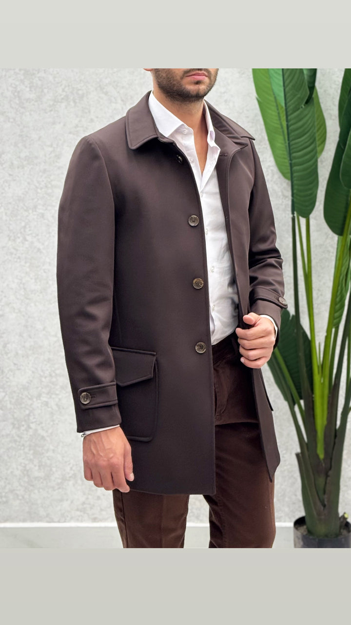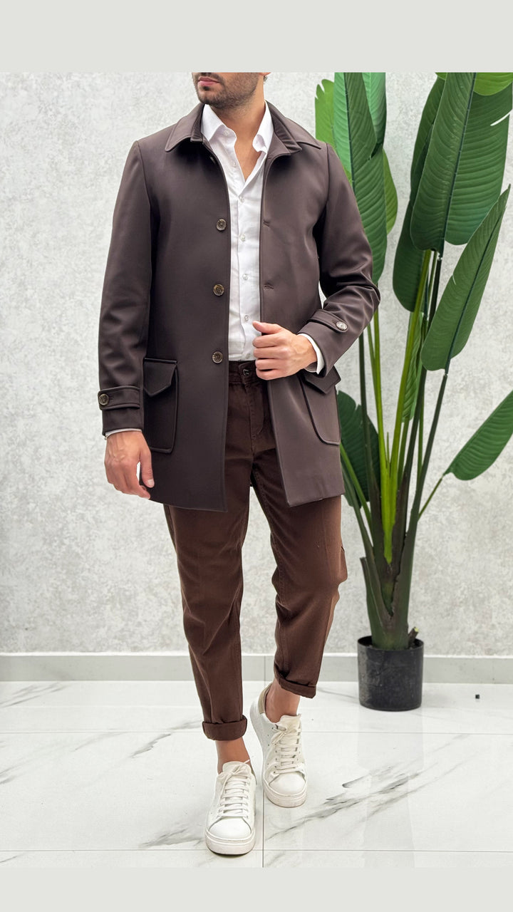 Trench in tessuto impermeabile, disponibile in diverse colorazioni. Vestibilità regular slim, il modello 1,76 per 73kg indossa 46